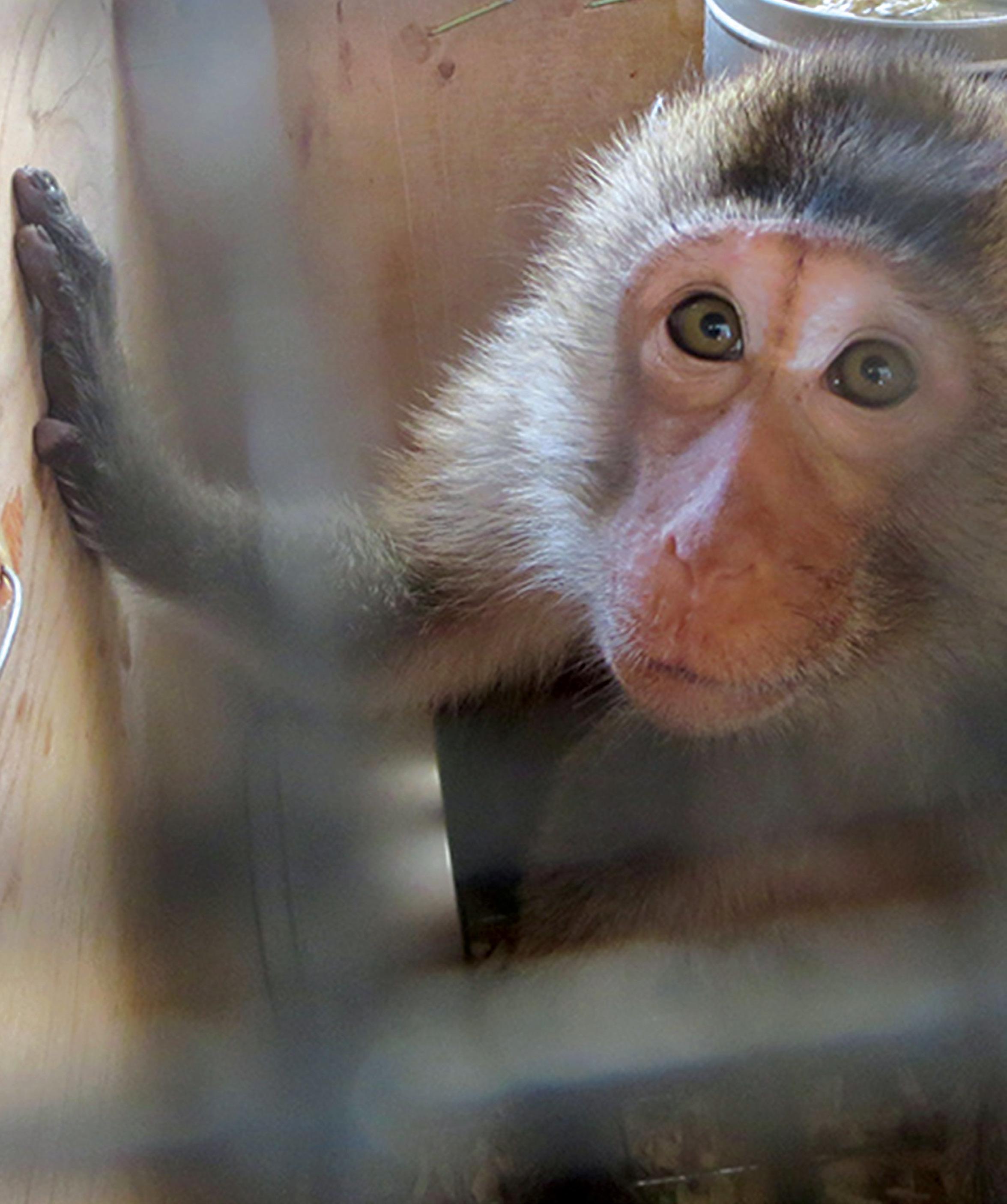 During the last 30 years, the University of Washington has imported pig-tailed macaques from Indonesia, cramming them into diseaseridden U.S. facilities and selling their babies to laboratories around the country for use in cruel and wasteful experiments. UW also acquires long-tailed macaques imported from around the world.