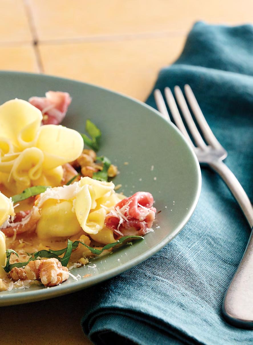 The sauce can be easily batched and created ahead. Also, the walnuts and prosciutto can be toasted in advance, separately, and added on top in the final presentation. This gives the dish an extra element of sophistication while improving back-of-house efficiencies.
