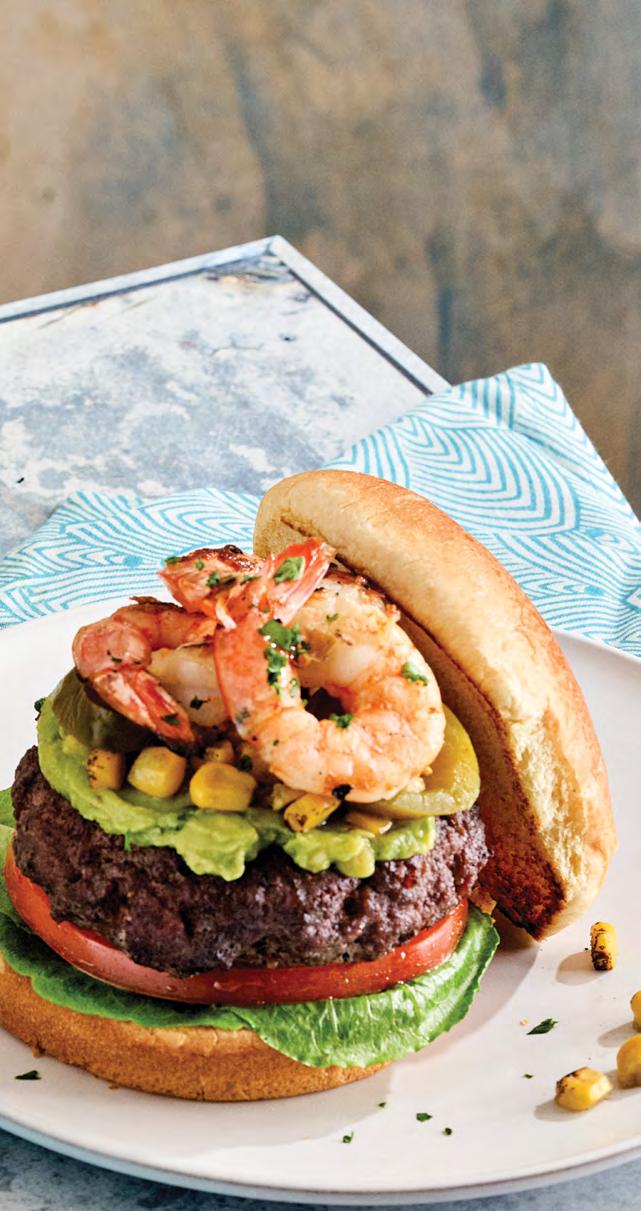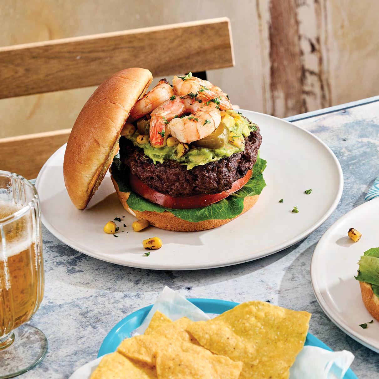 Mexican fire roasted corn and jalapenos from Contigo® provide a bed of street flair for the plump chargrilled Bay Winds® shrimp. The levels of flavor are held together in a soft, golden-brown bun. This Sunshine Key Burger is an upseller’s dream, because there’s no chance a single paired beverage will suffice.