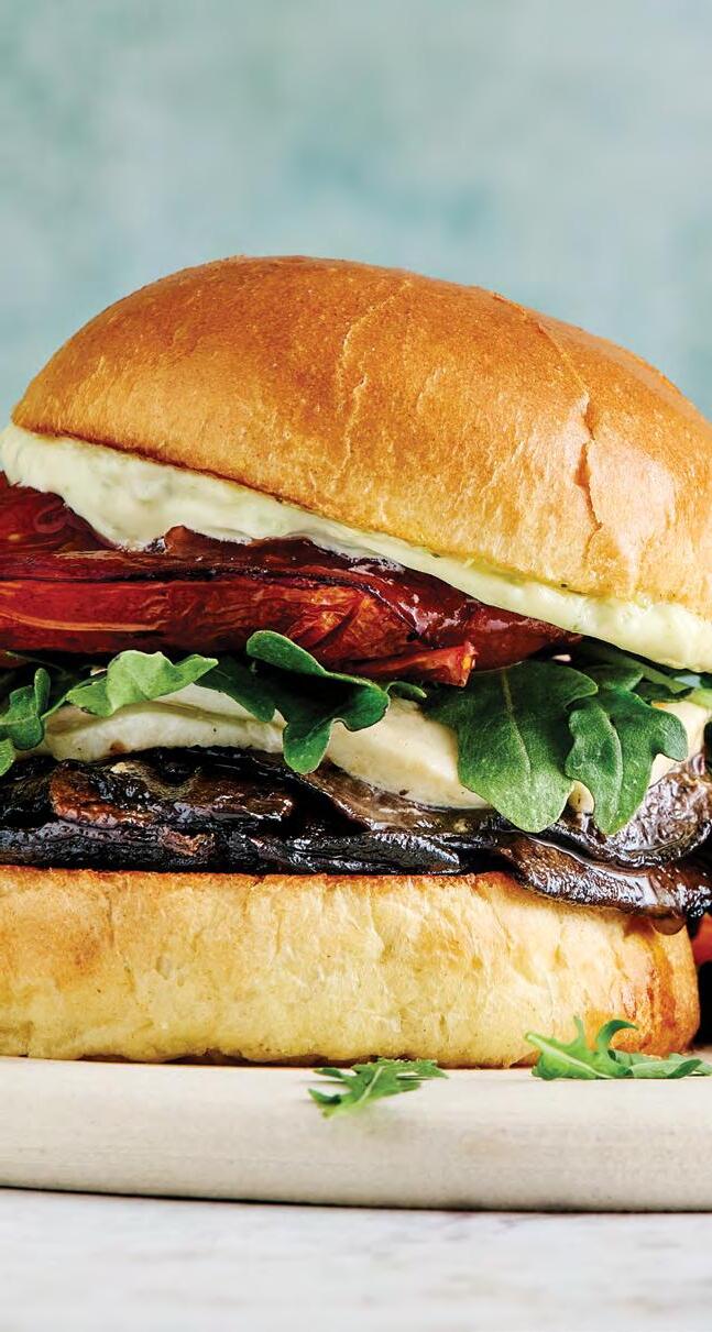 Start by brushing a Peak® Portobello Mushroom cap with Village Garden® Balsamic Vinaigrette and toss it in the oven. Then grill the soft mushroom burger-style and drop it on the bottom of a Heritage Ovens Brioche Bun. Layer on slices of Piancone® Caprese Loaf Mozzarella, baby arugula, roasted Peak Tomatoes, and creamy Roma® Basil Pesto mayo. Serve with a side of crispy sweet potato fries to complement the tiers of cheesy veggies. Mushroom lovers transcend simple dietary labels and will crush this smash-worthy handheld.