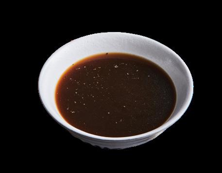 Asian Pride Coconut Milk, sourced from Thailand, is combined with Peak® veggies and herbs, West Creek® Chicken Bone Broth, West Creek Honey, and spicy chili crisp oil for a golden dipping sauce — a bright contrast to the moody, dark broth, starring a shelf-stable, black Angus beef bone broth stock concentrate.