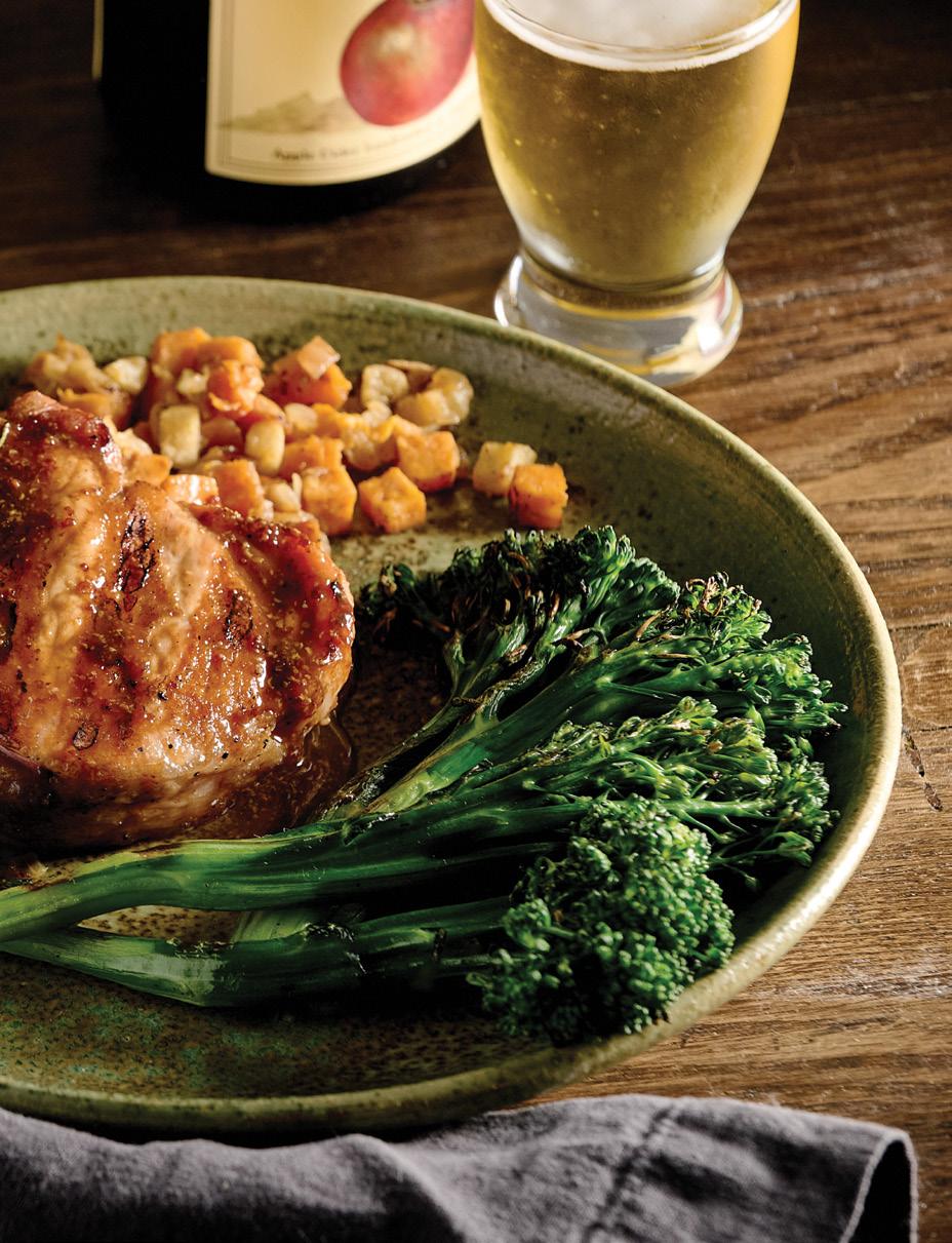 Fan out the elevated harvest experience by resting the chop across a Peak® Sweet Potato and Apple hash and curve a slightly charred stalk of earthy broccolini around the pork. The right protein and beverage pairing pulls the farmhouse-style plate together, so consider upselling a glass of crisp, dry apple cider to complement these fall flavors.