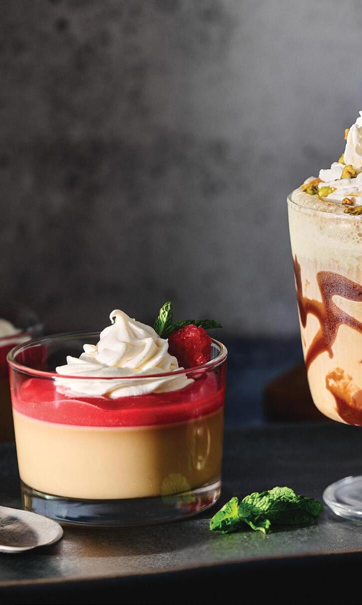 Next, Dark Notorious pulls double duty, mixed into an elegant, silky-smooth panna cotta. Combine fresh raspberries, Magellan® Lemon Juice, Peak® Lemon Zest, and FLAVORSMITH® Hot Honey for an exquisite raspberry coulis topping, adding a good balance of bitter, sweet, and acidity to a classic Italian-style dessert. When your guests get up from the table, they’ll already be making plans for a return trip.