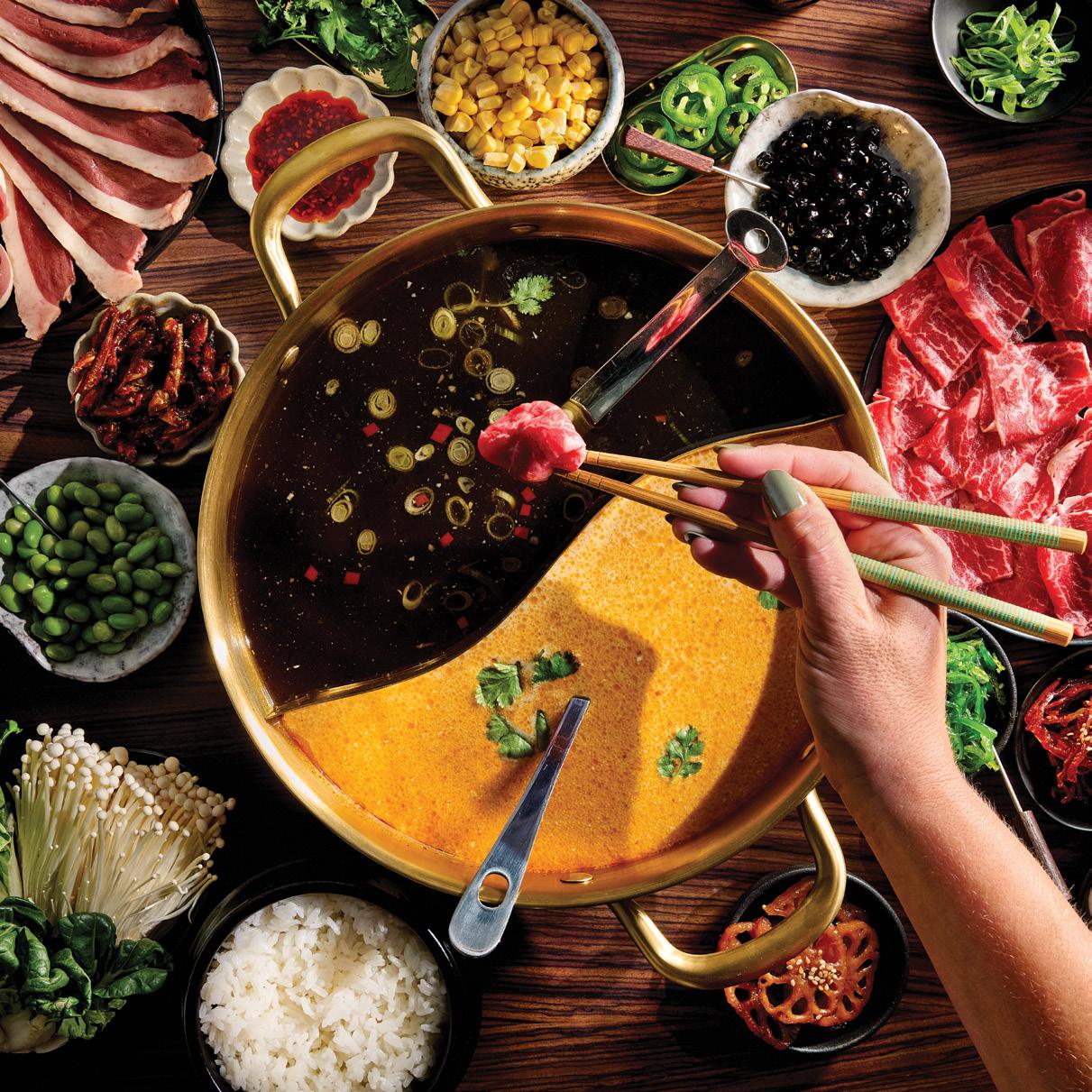 Enter the interactive Asian Pride Dueling Broth Hot Pot special. Fine dining and international fusion meet head on for this dazzling presentation. The centerpiece is a yin and yang of vivid coconut broth and rich Braveheart® Beef Broth.