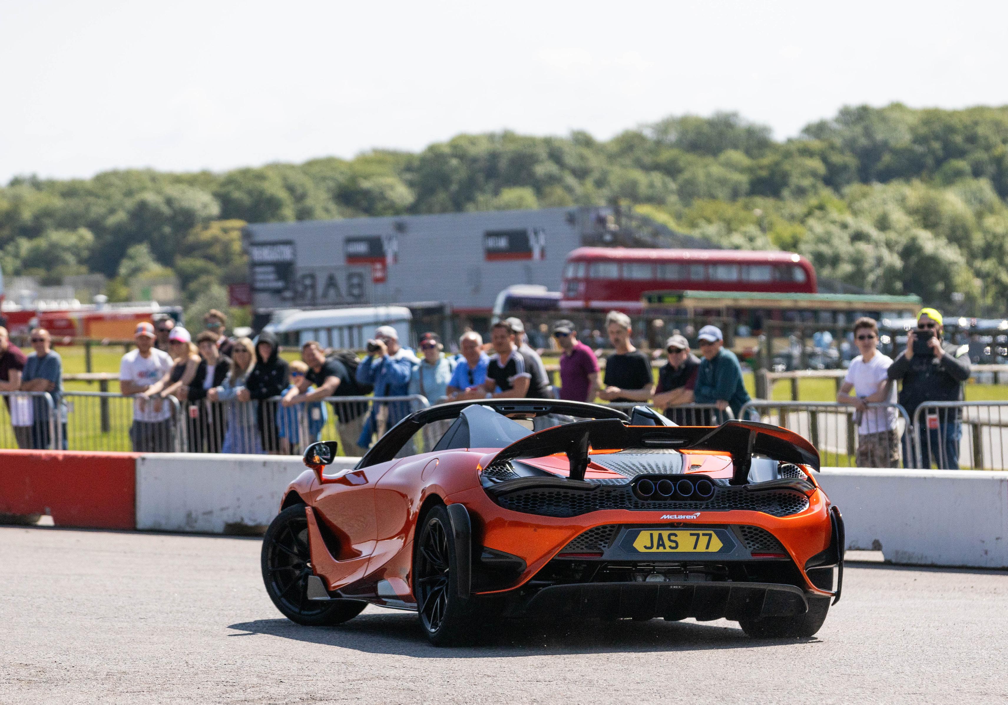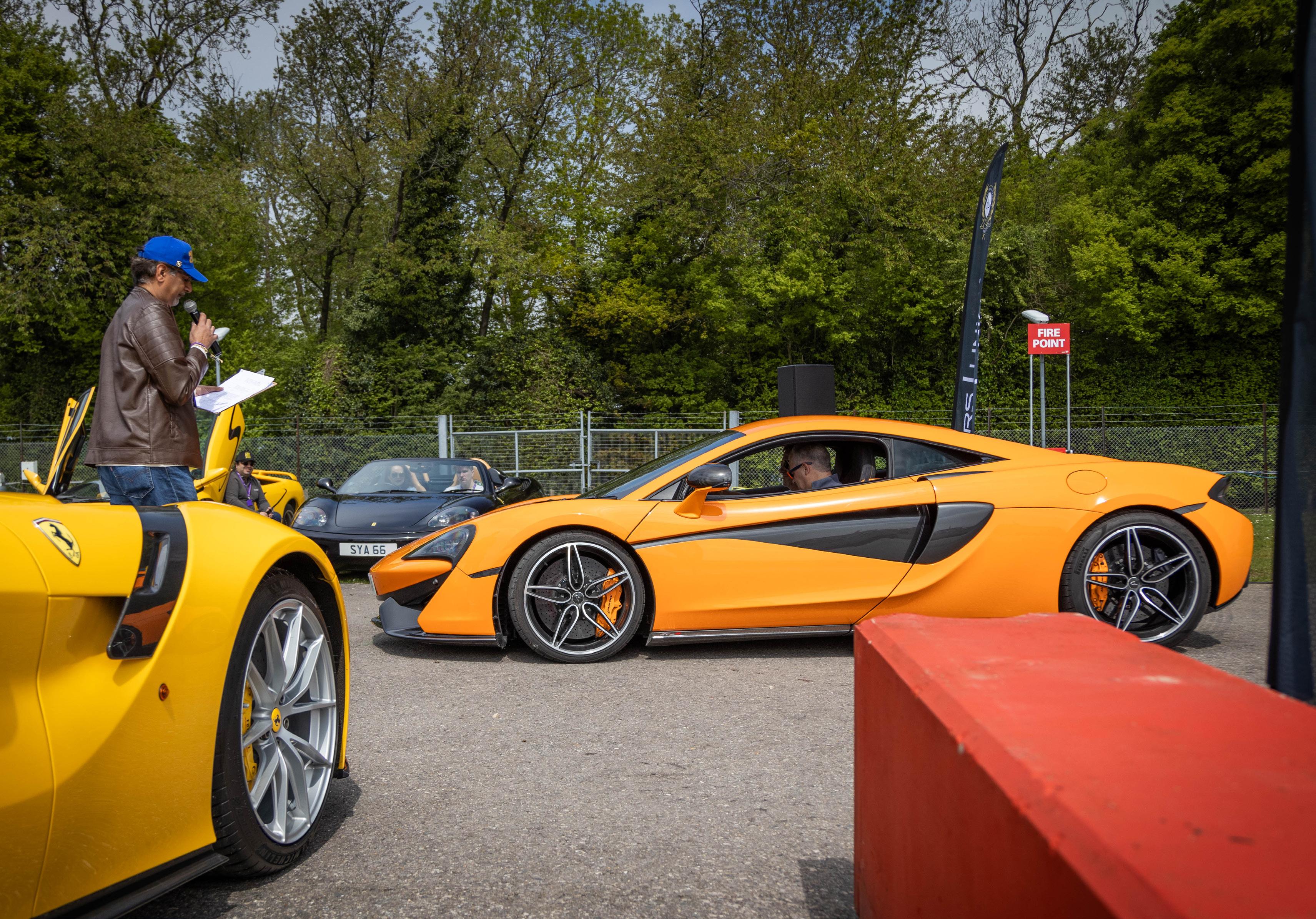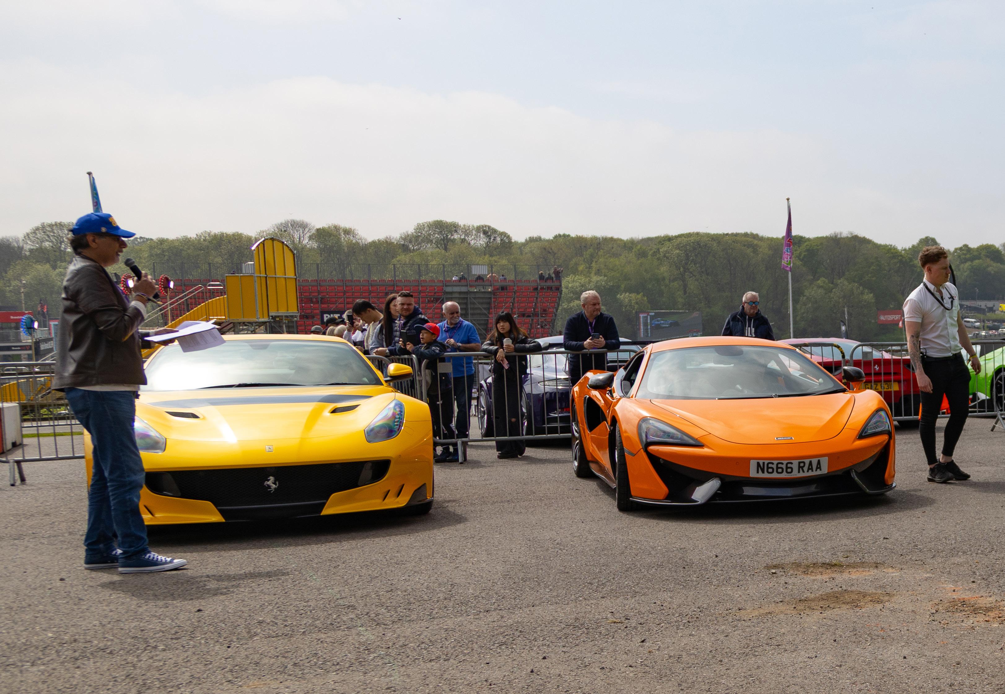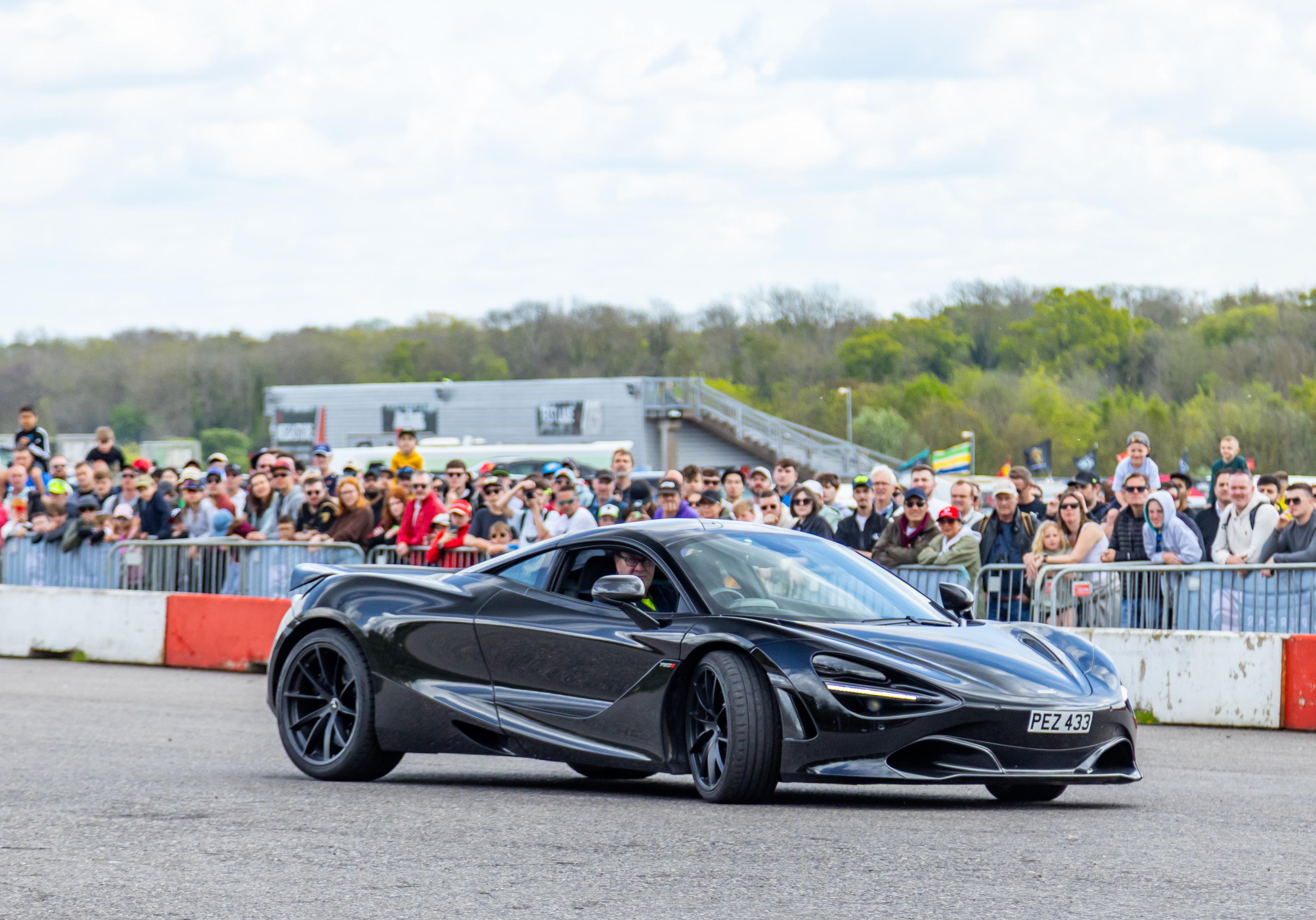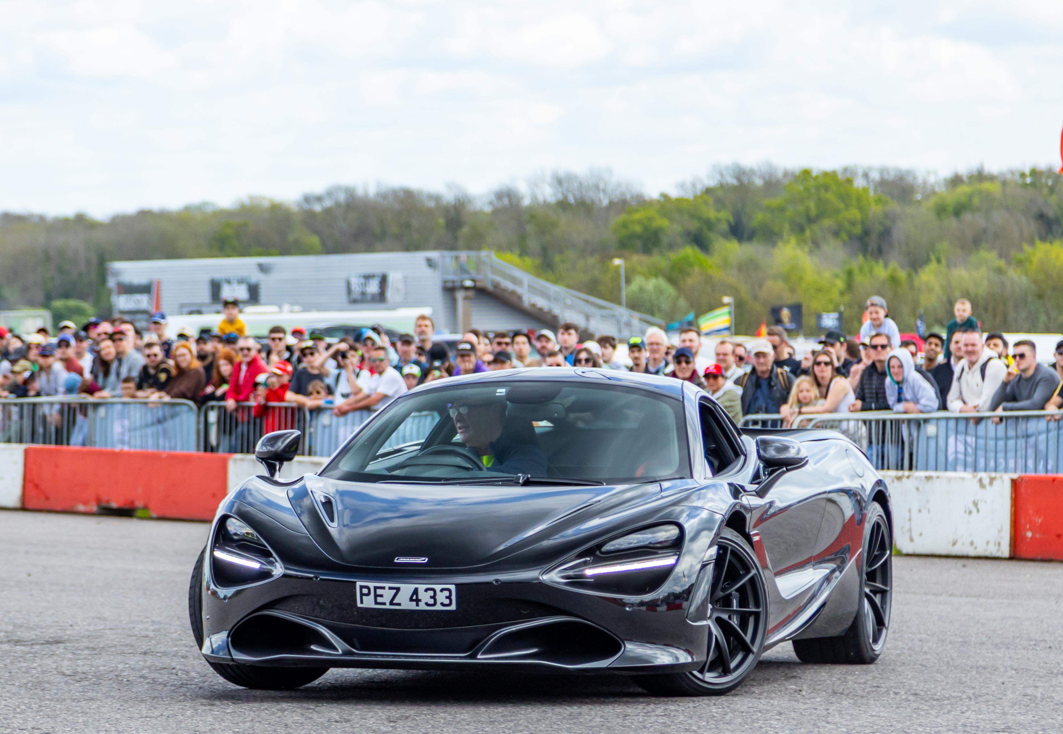 My job as emcee is part storyteller, part conductor of controlled chaos… and part ten-year-old kid. I’m there to keep the crowd informed, entertained, and just a little on edge as McLarens, Ferraris, Lamborghinis and the occasional howling classic, attack a short course as fast as their owners dare to drive between concrete blocks.