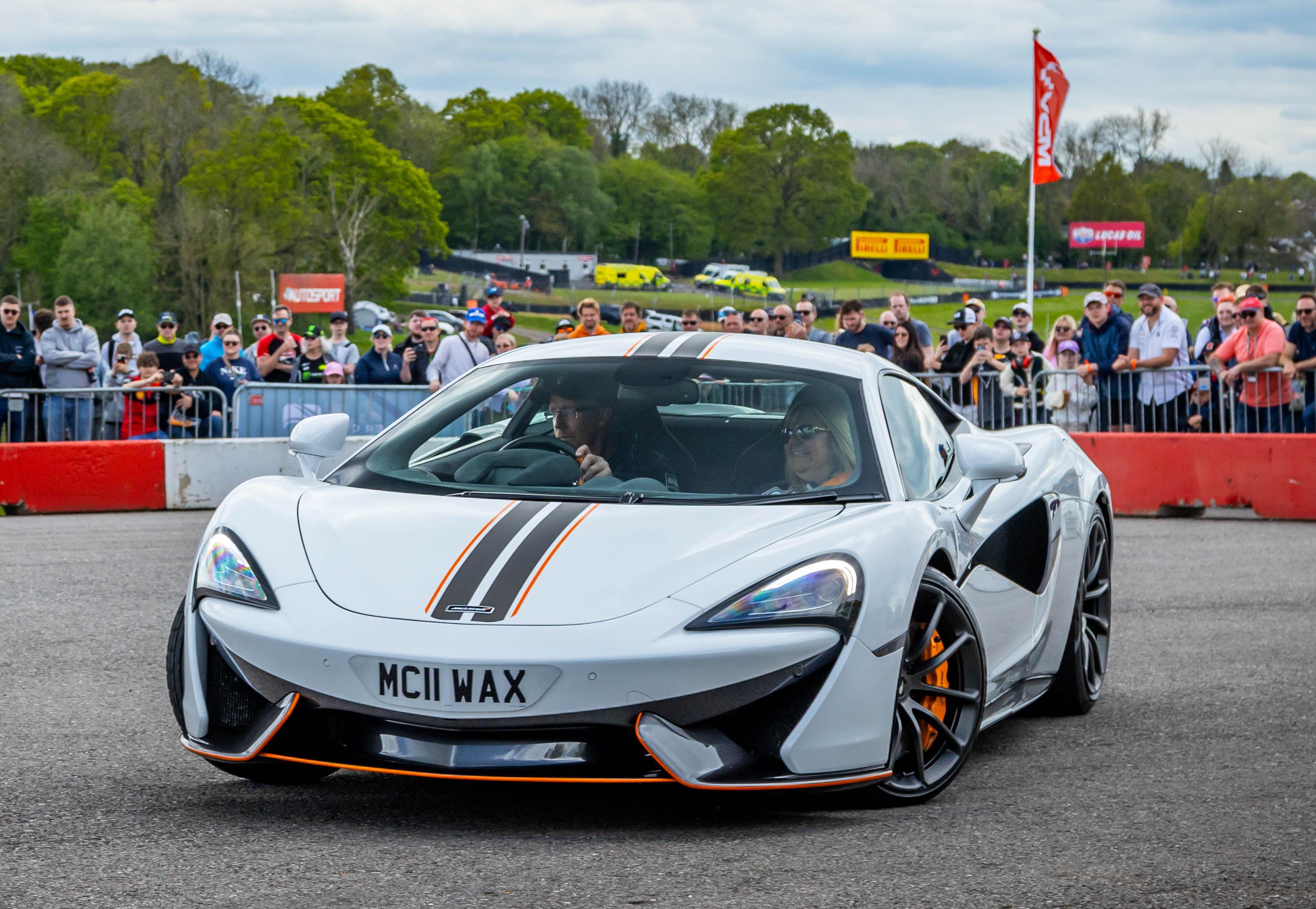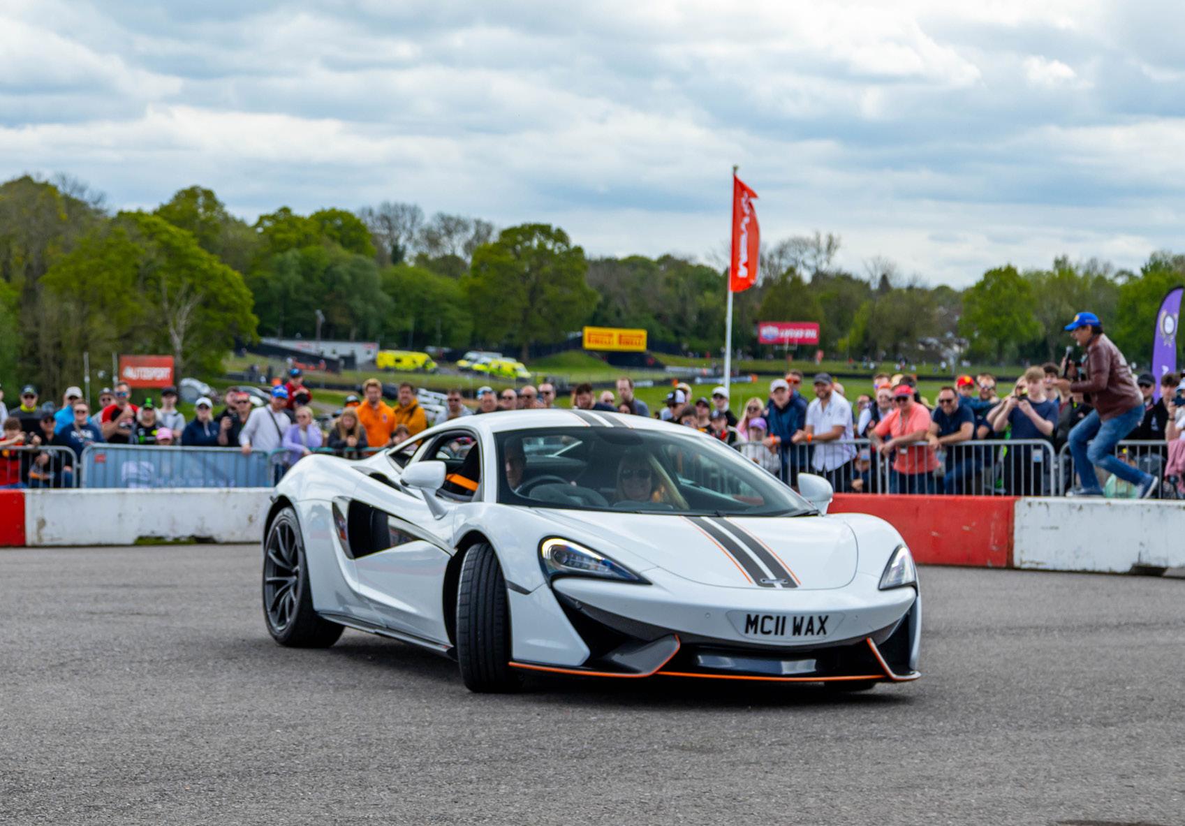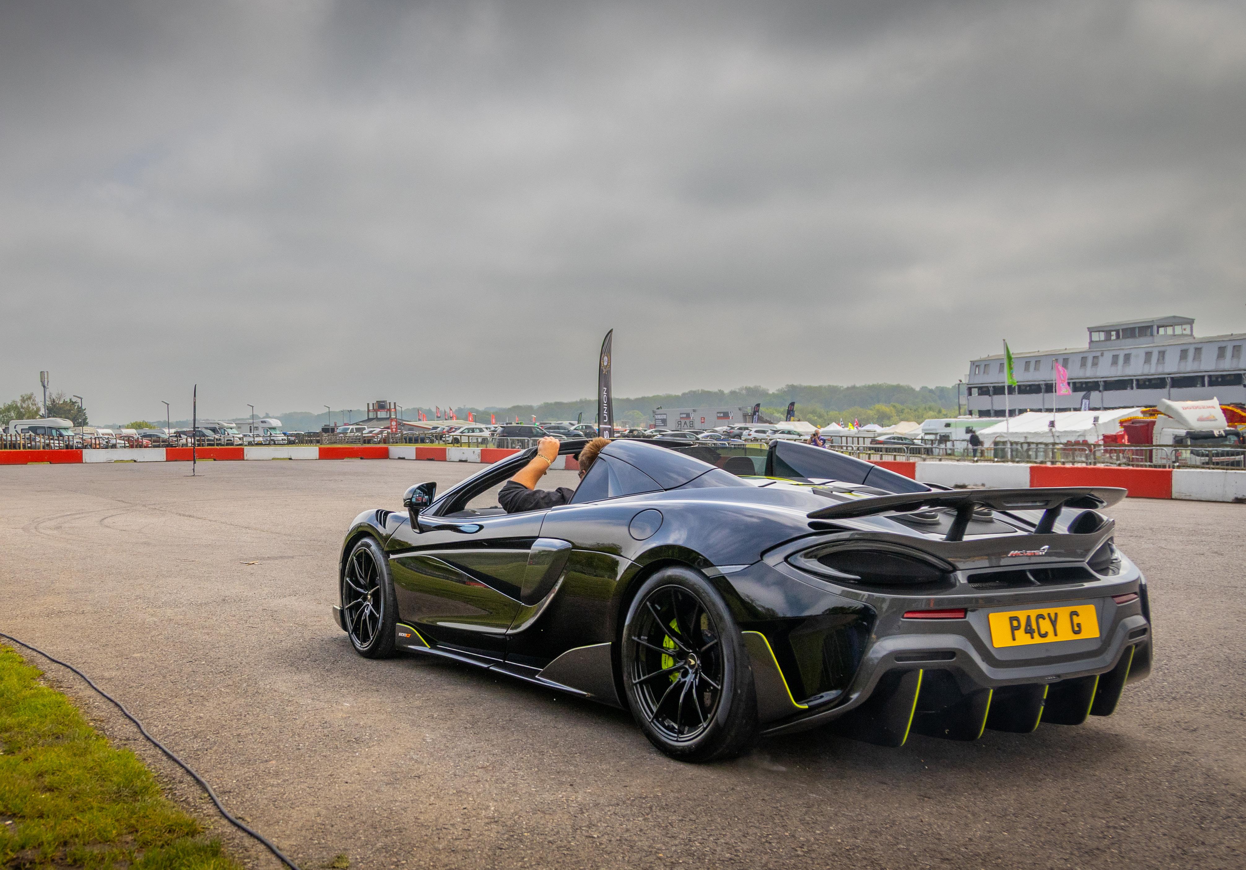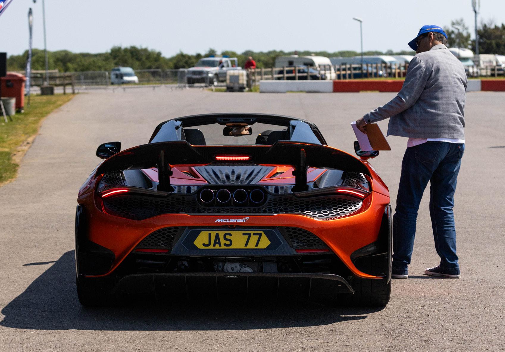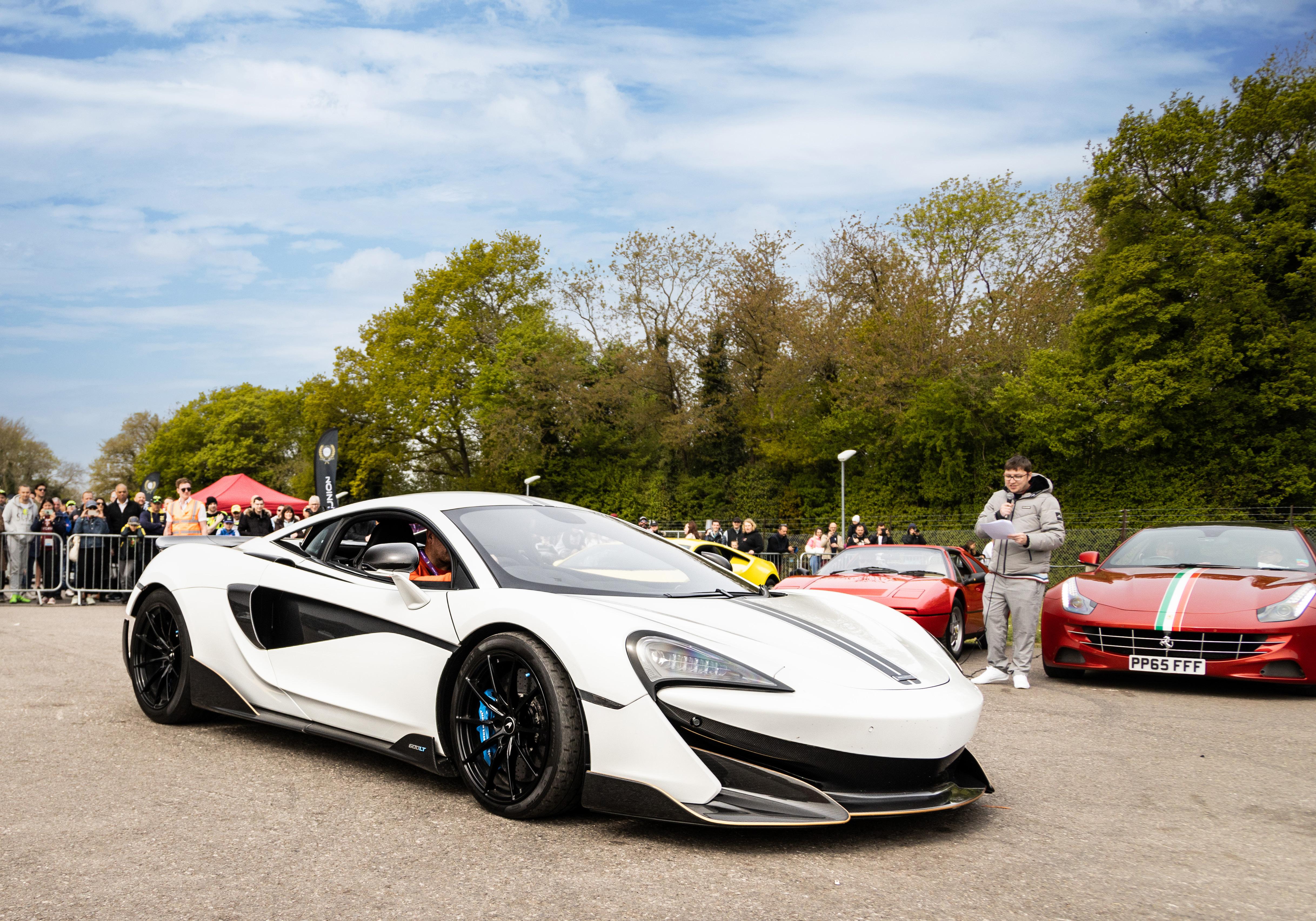 My job as emcee is part storyteller, part conductor of controlled chaos… and part ten-year-old kid. I’m there to keep the crowd informed, entertained, and just a little on edge as McLarens, Ferraris, Lamborghinis and the occasional howling classic, attack a short course as fast as their owners dare to drive between concrete blocks.