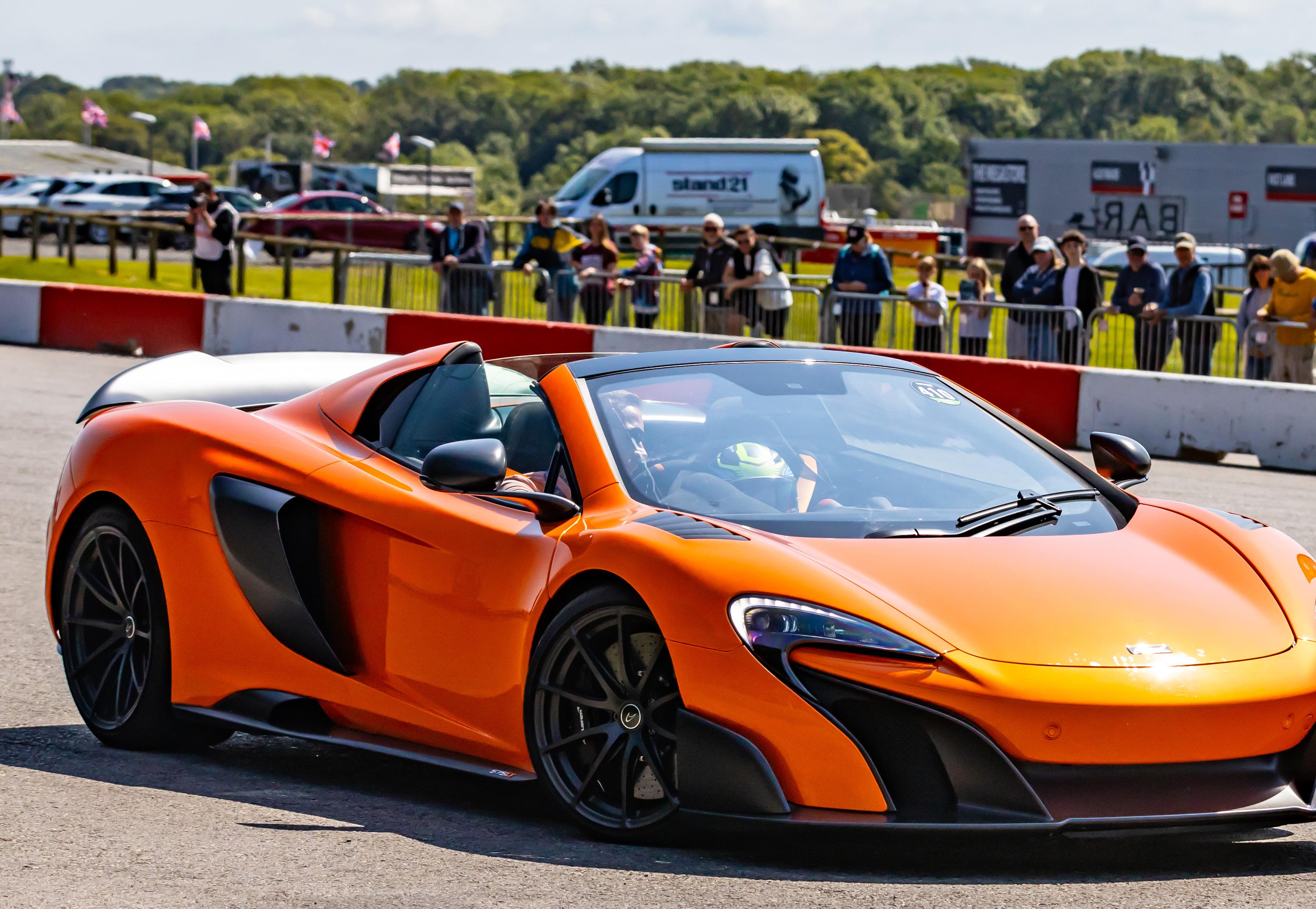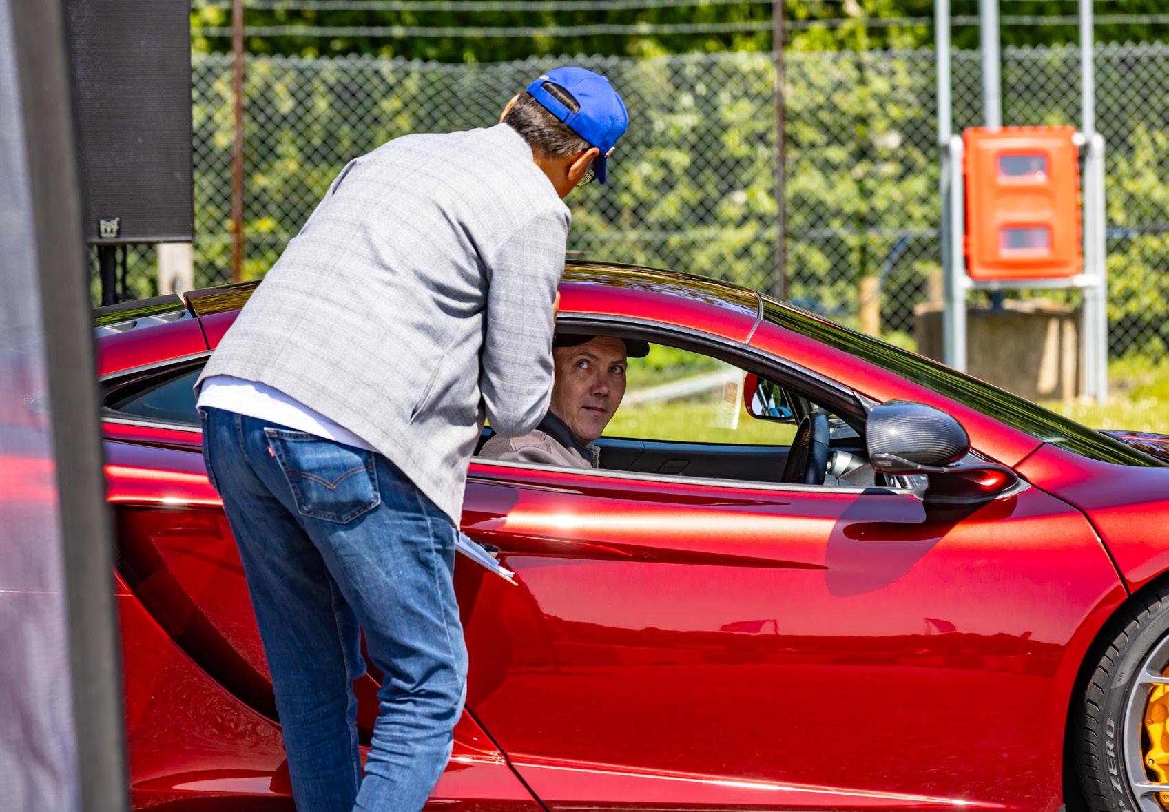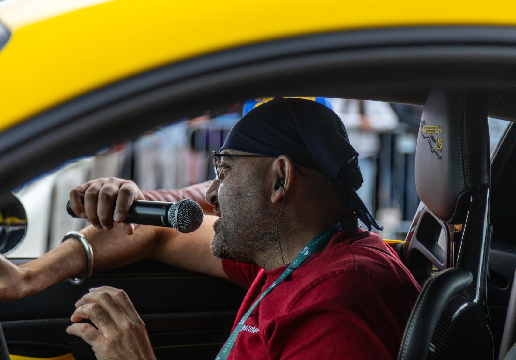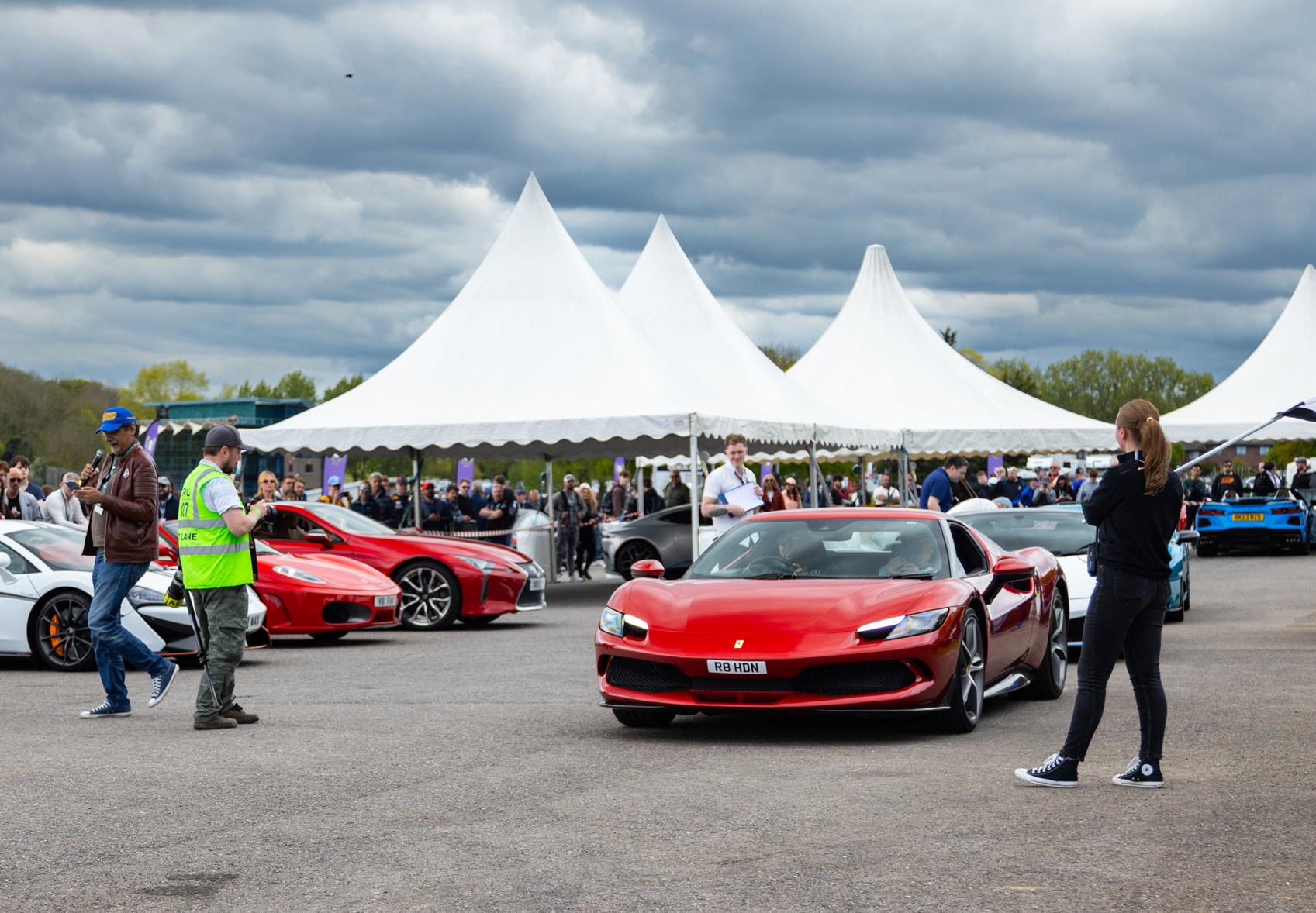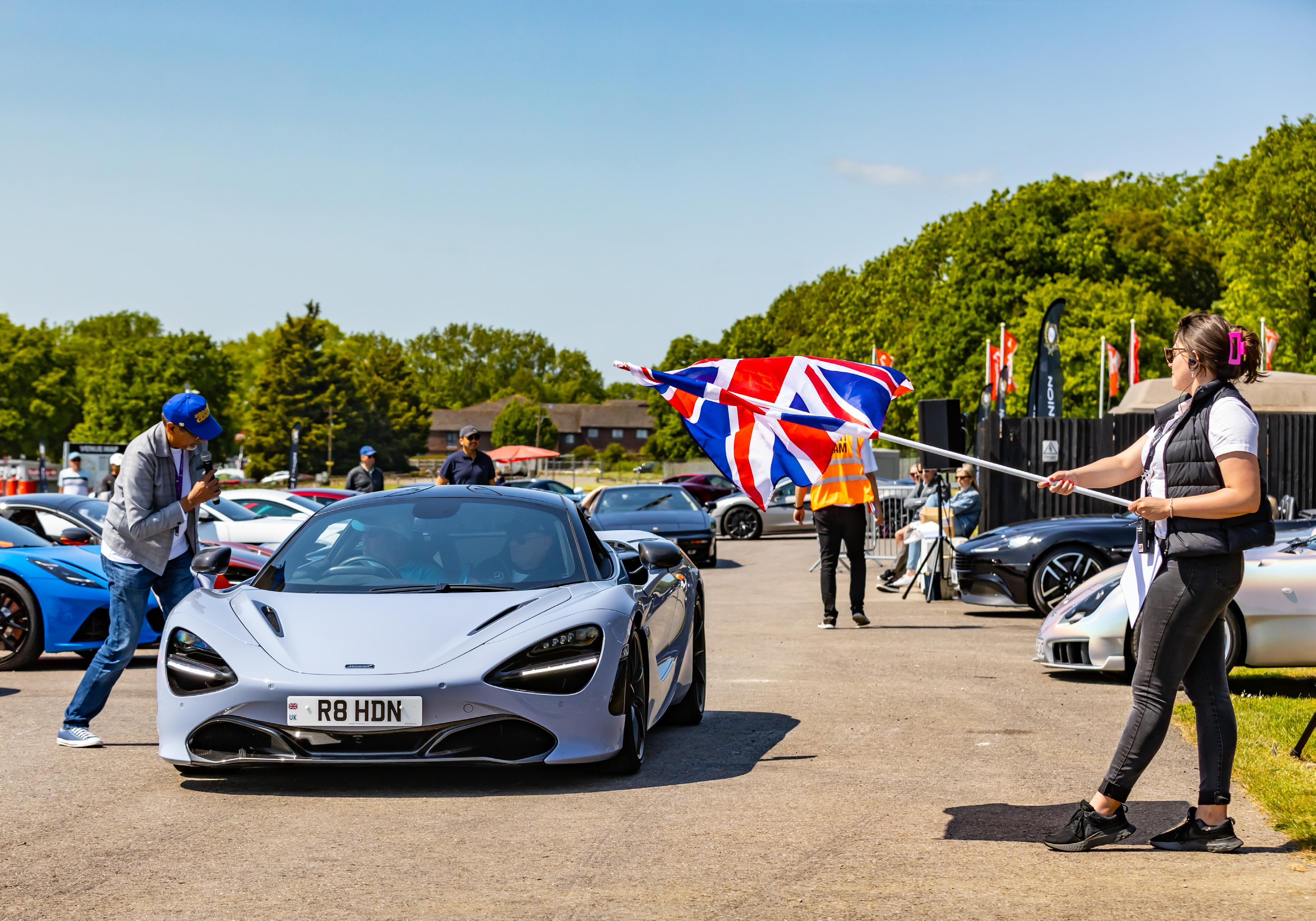 My job as emcee is part storyteller, part conductor of controlled chaos… and part ten-year-old kid. I’m there to keep the crowd informed, entertained, and just a little on edge as McLarens, Ferraris, Lamborghinis and the occasional howling classic, attack a short course as fast as their owners dare to drive between concrete blocks.