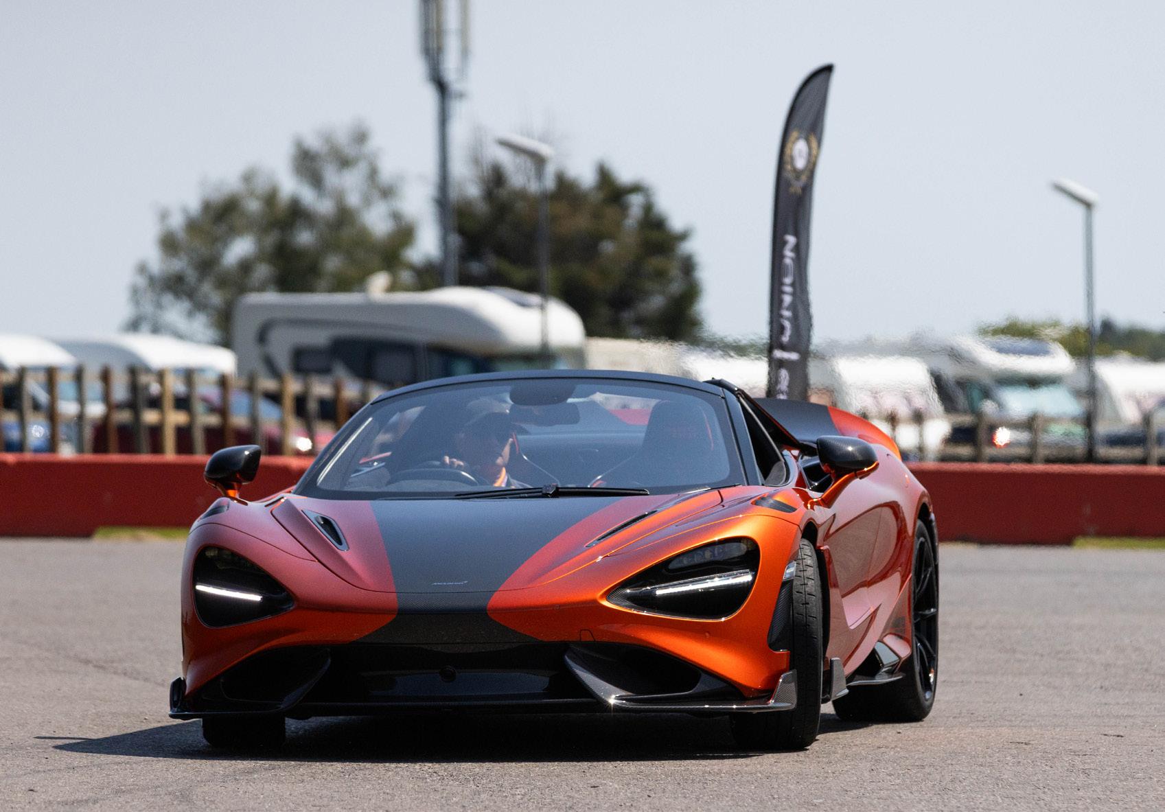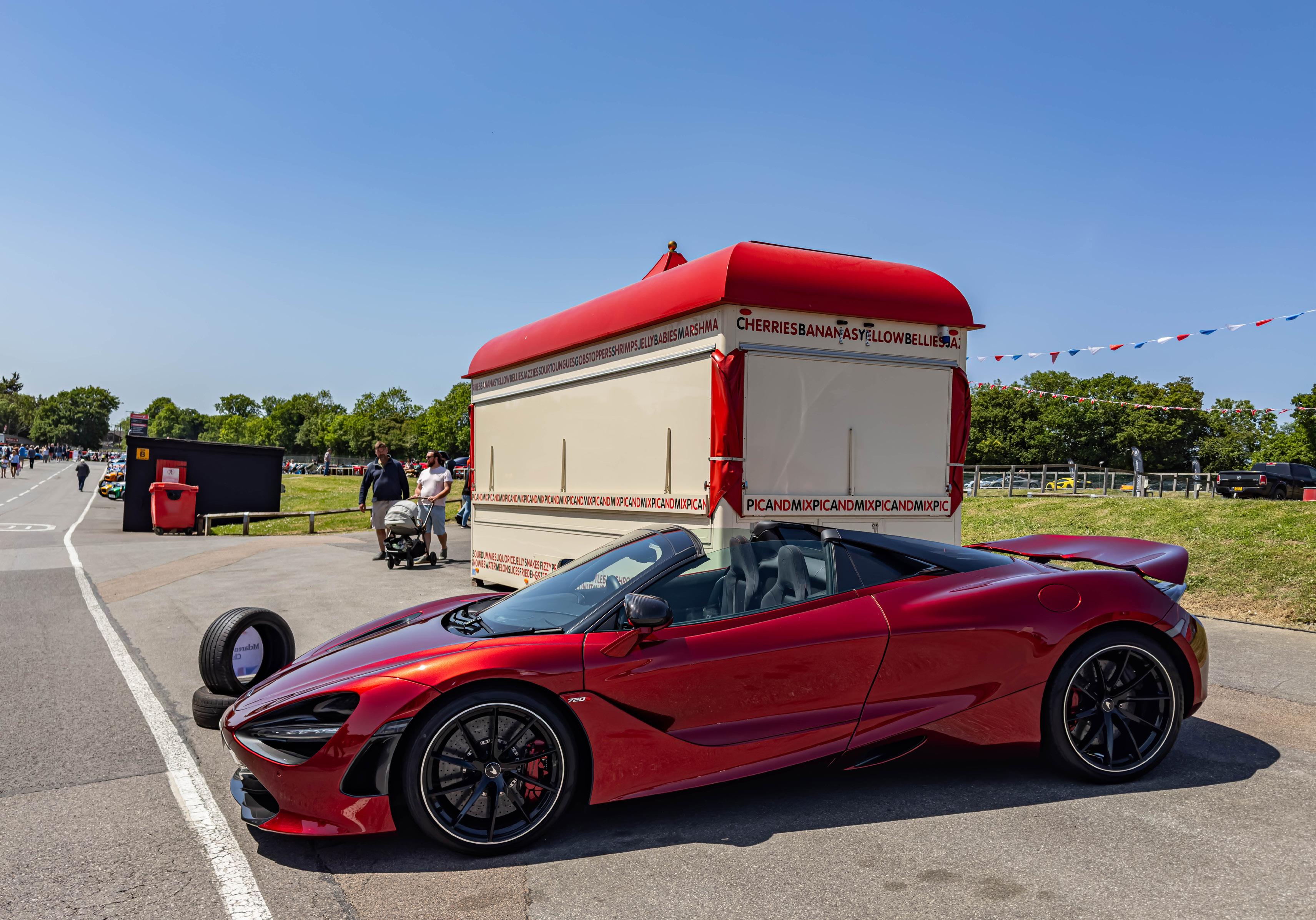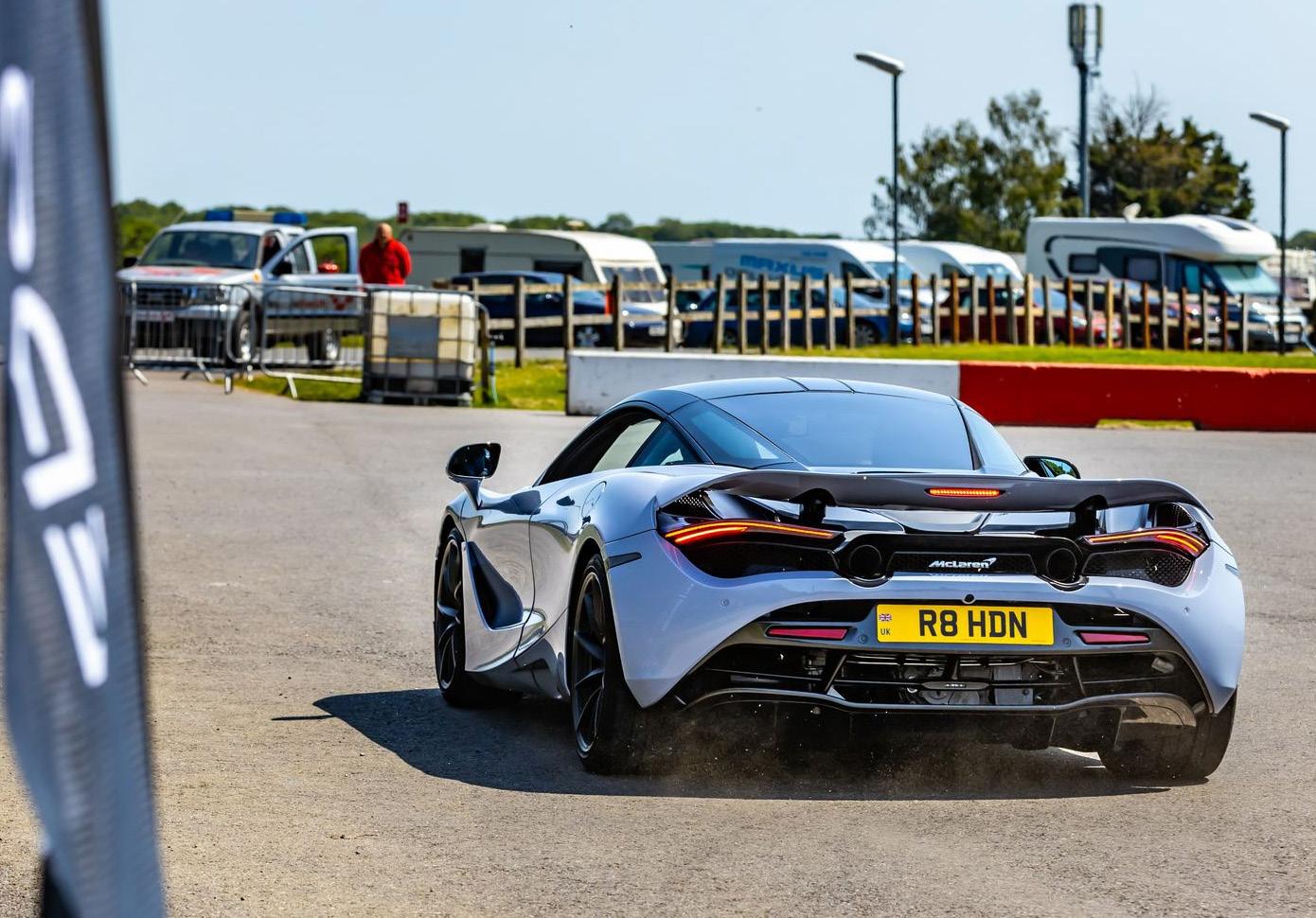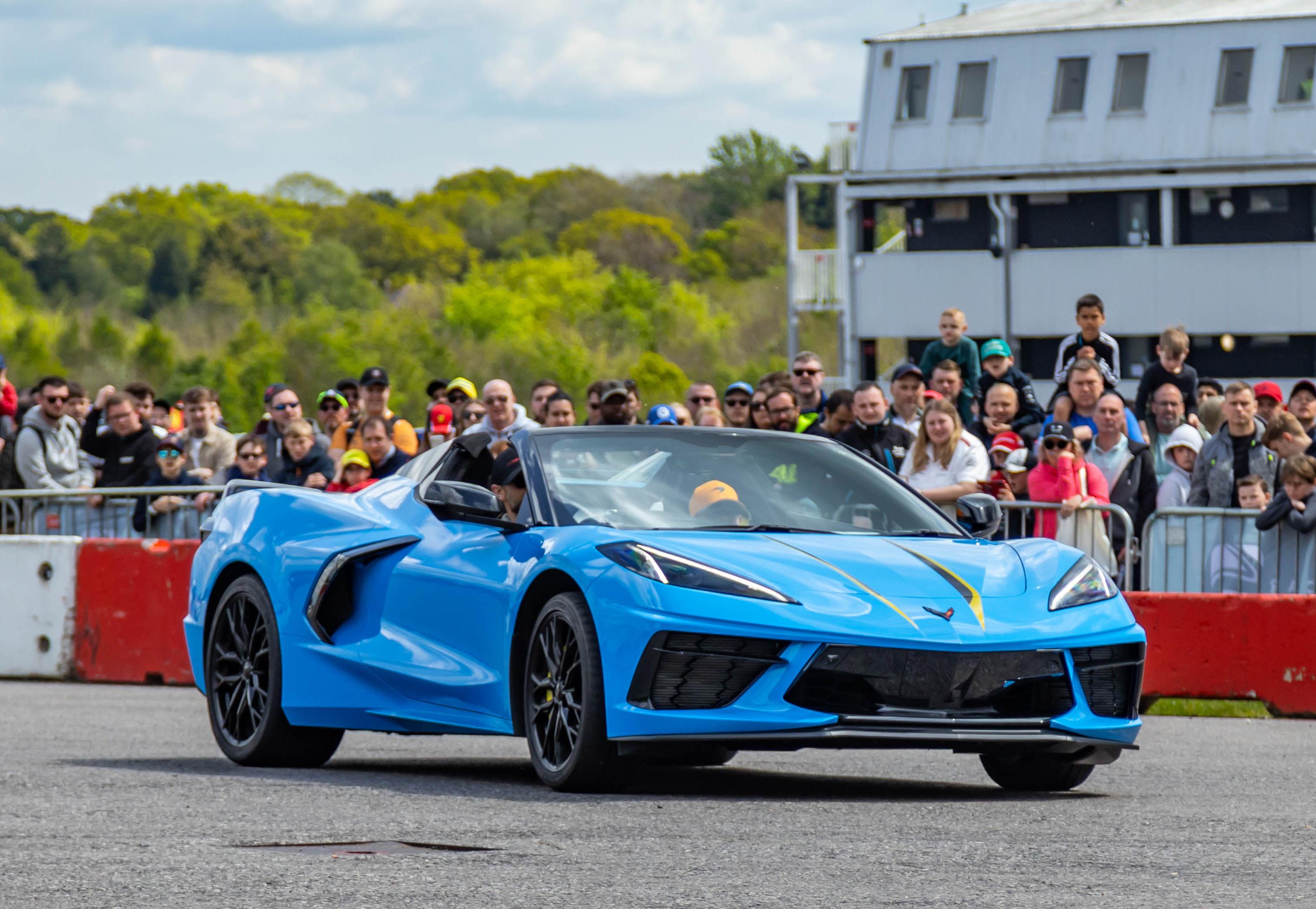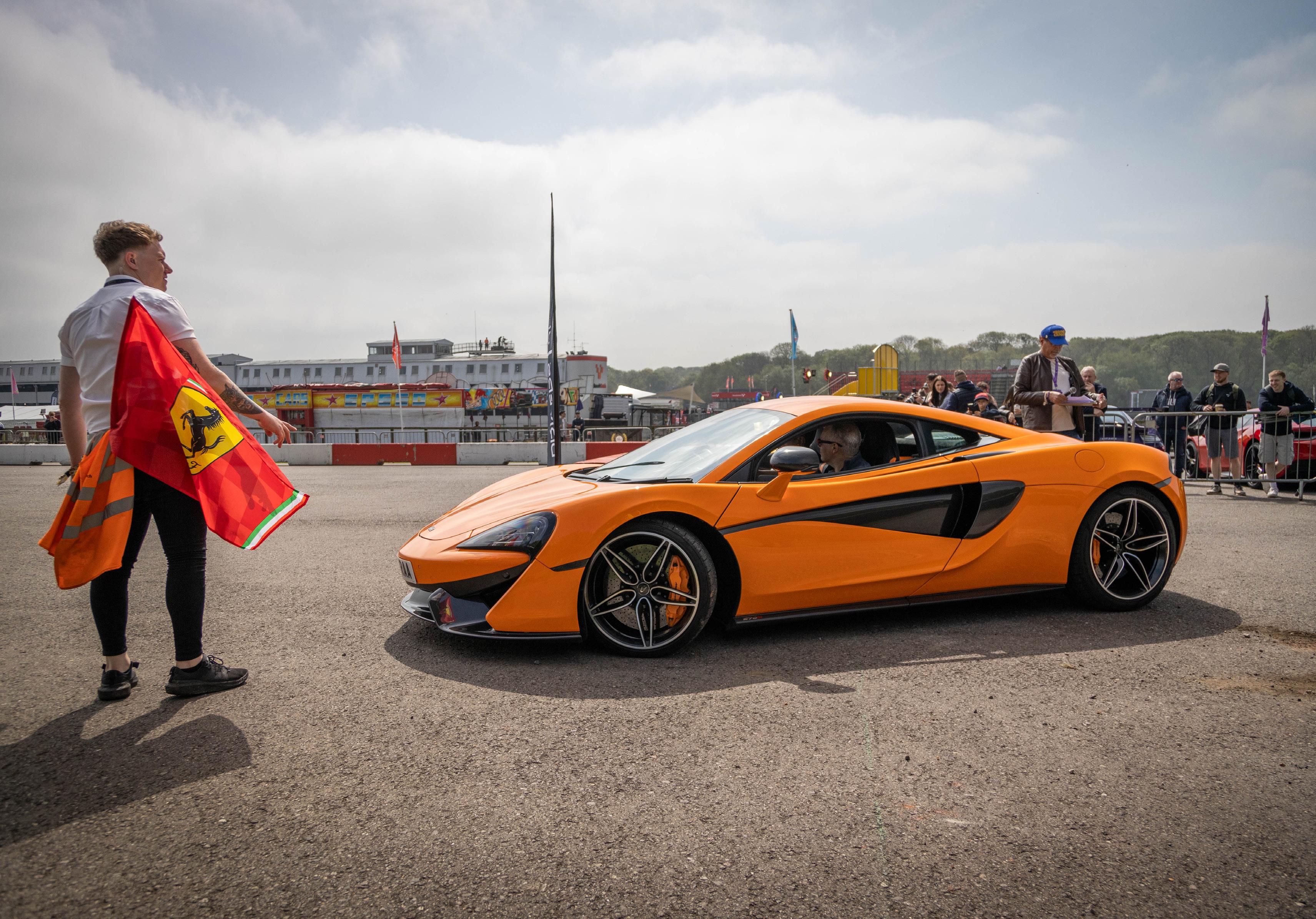 My job as emcee is part storyteller, part conductor of controlled chaos… and part ten-year-old kid. I’m there to keep the crowd informed, entertained, and just a little on edge as McLarens, Ferraris, Lamborghinis and the occasional howling classic, attack a short course as fast as their owners dare to drive between concrete blocks.