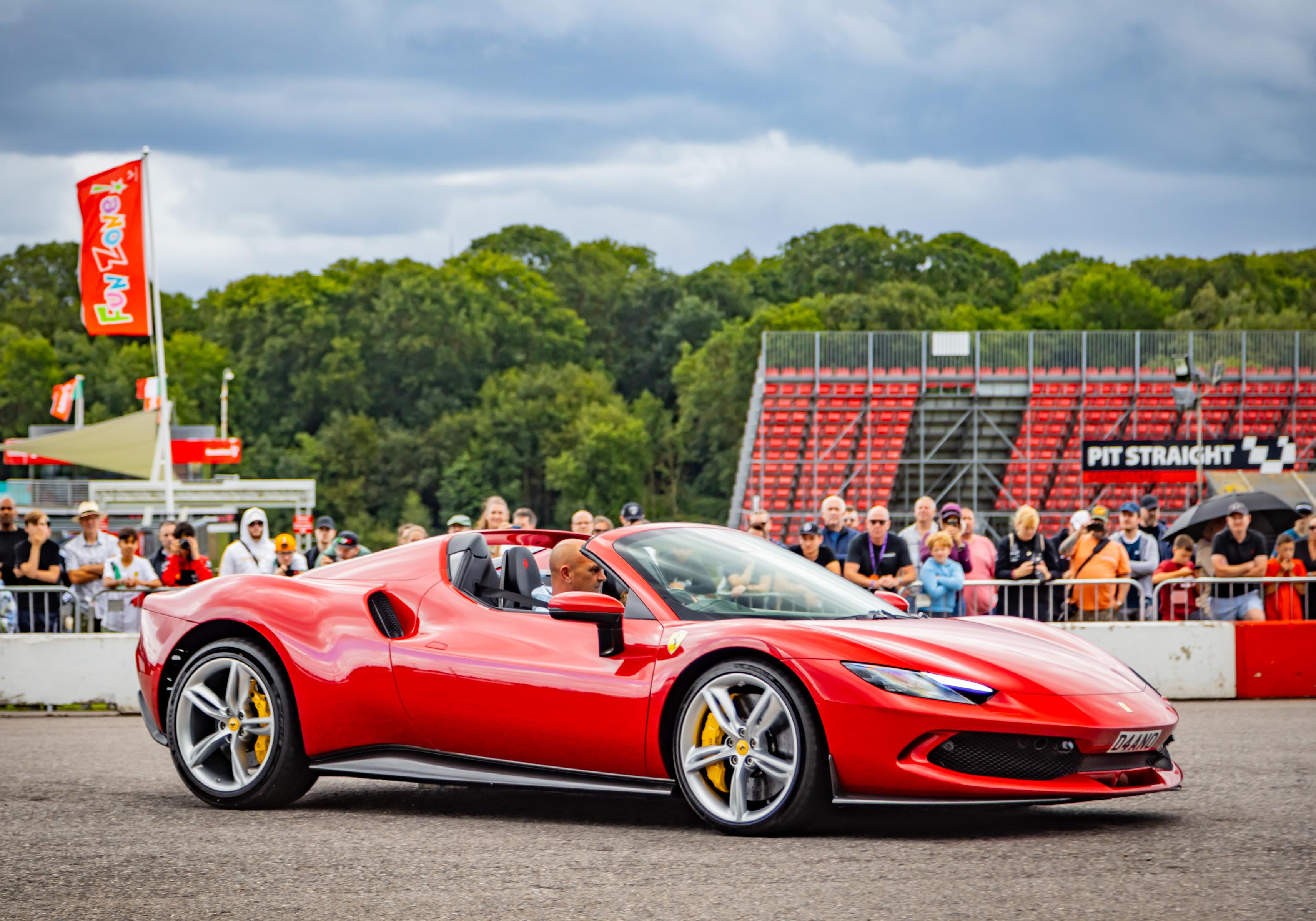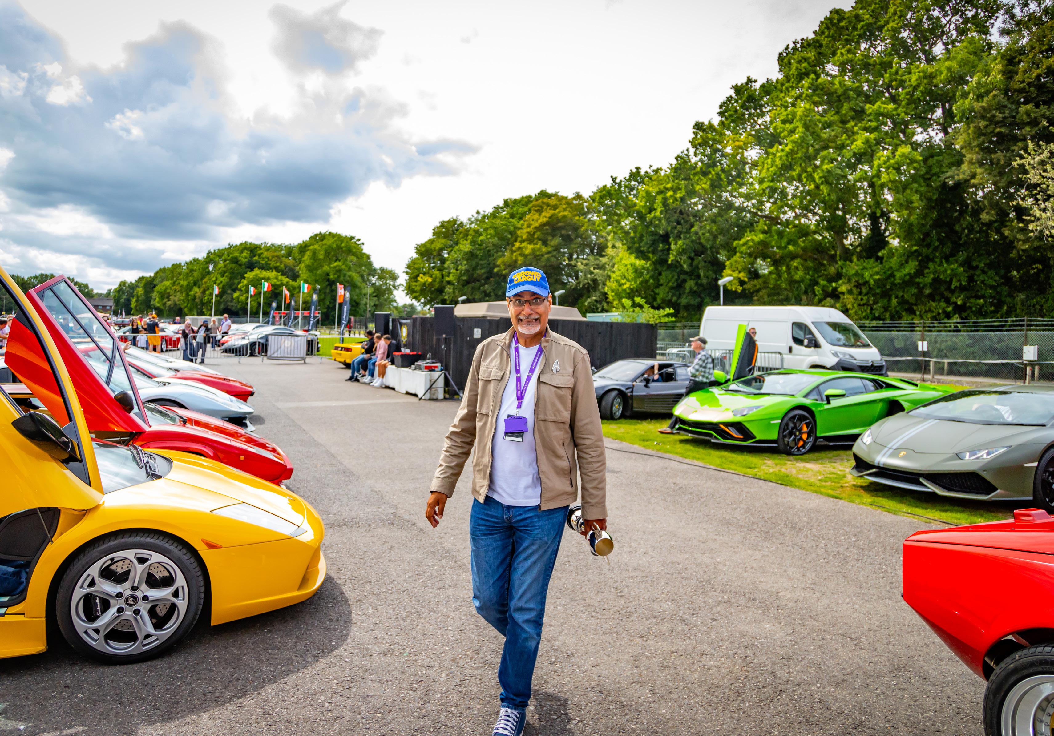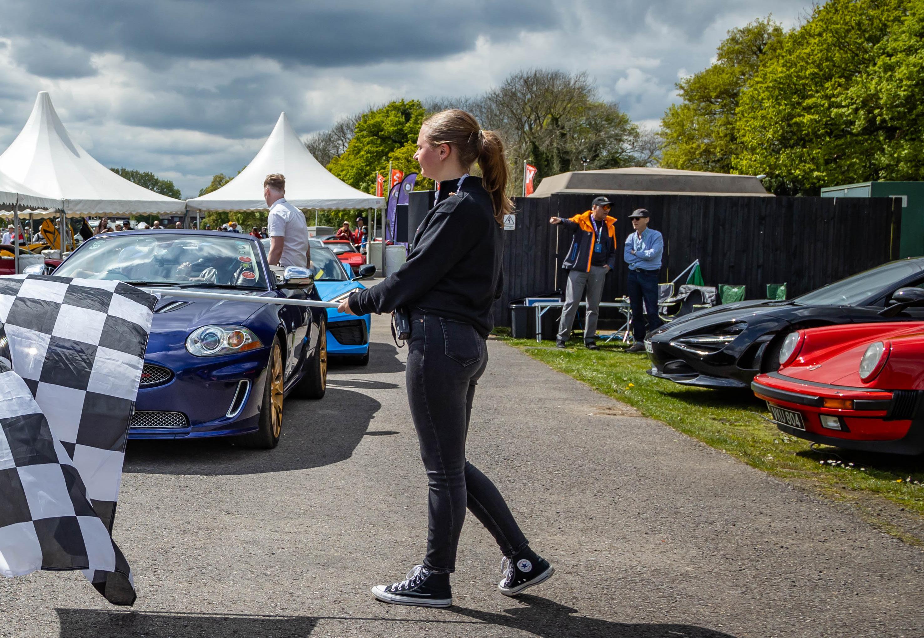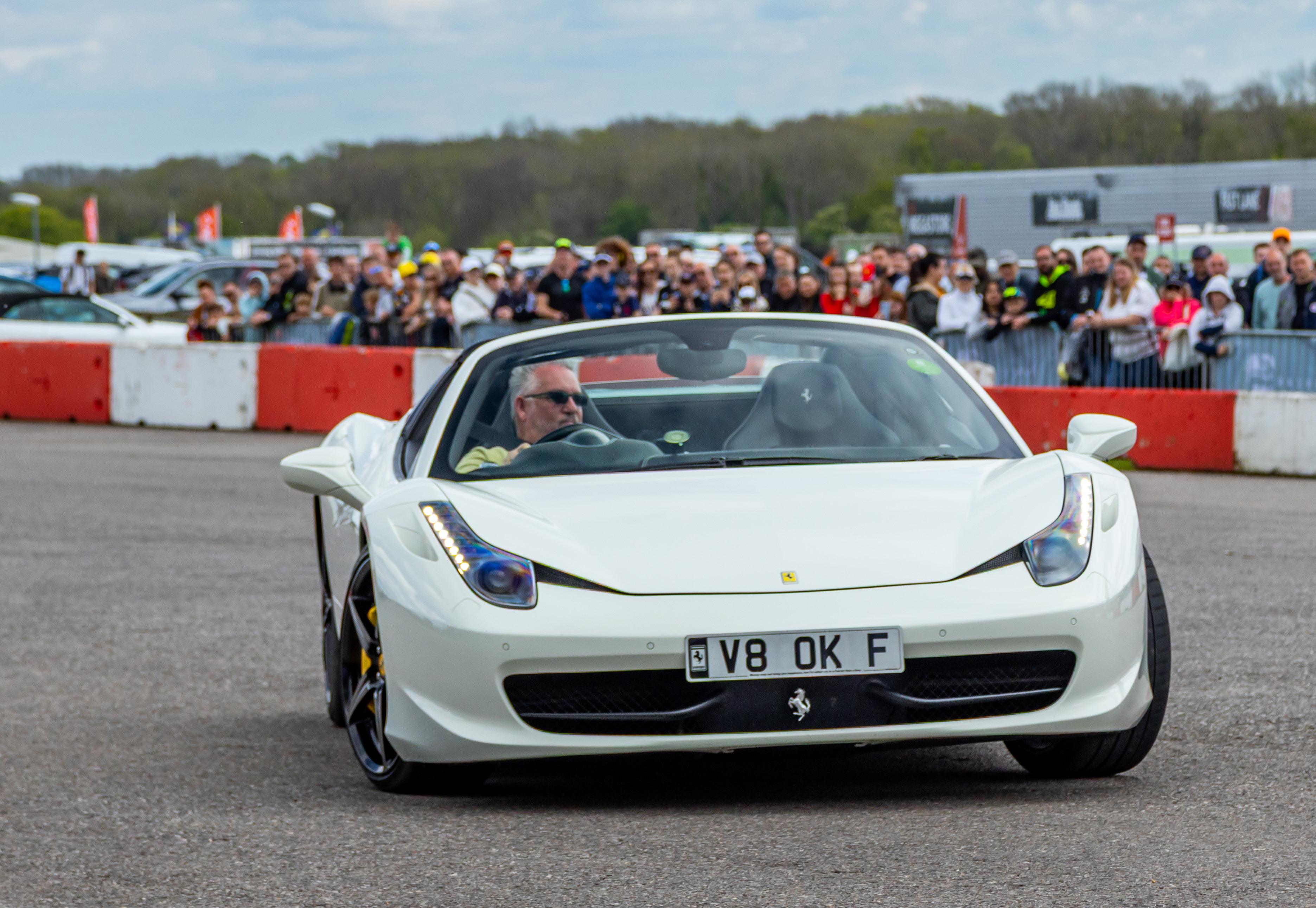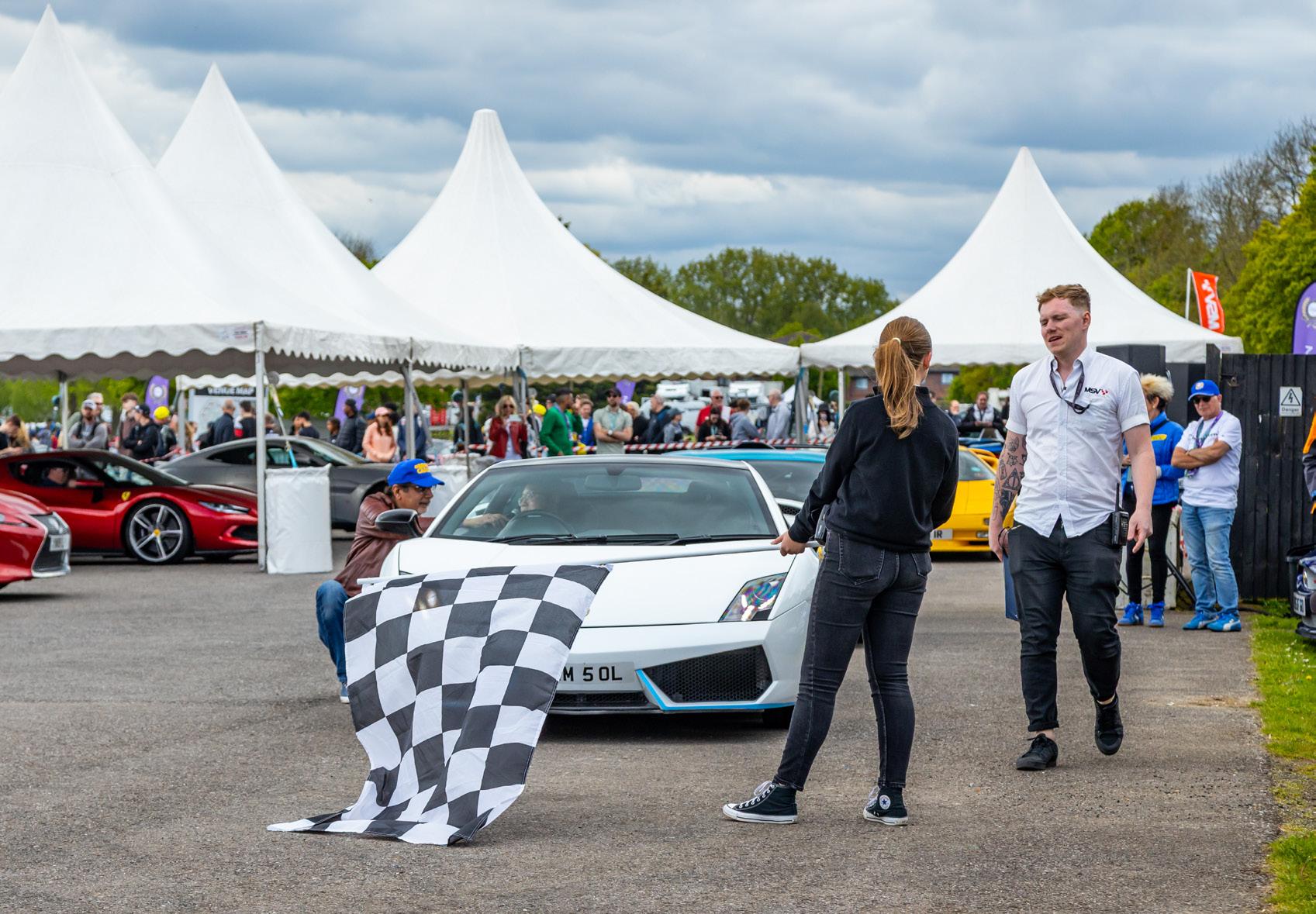 My job as emcee is part storyteller, part conductor of controlled chaos… and part ten-year-old kid. I’m there to keep the crowd informed, entertained, and just a little on edge as McLarens, Ferraris, Lamborghinis and the occasional howling classic, attack a short course as fast as their owners dare to drive between concrete blocks.