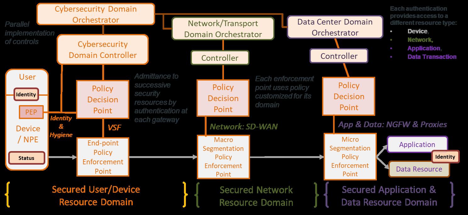 • Security policies will be universally and consistently automated and orchestrated at the macro level for the DoD enterprise. Granular security policies and access controls will be automated and orchestrated at the micro level by mission owners.