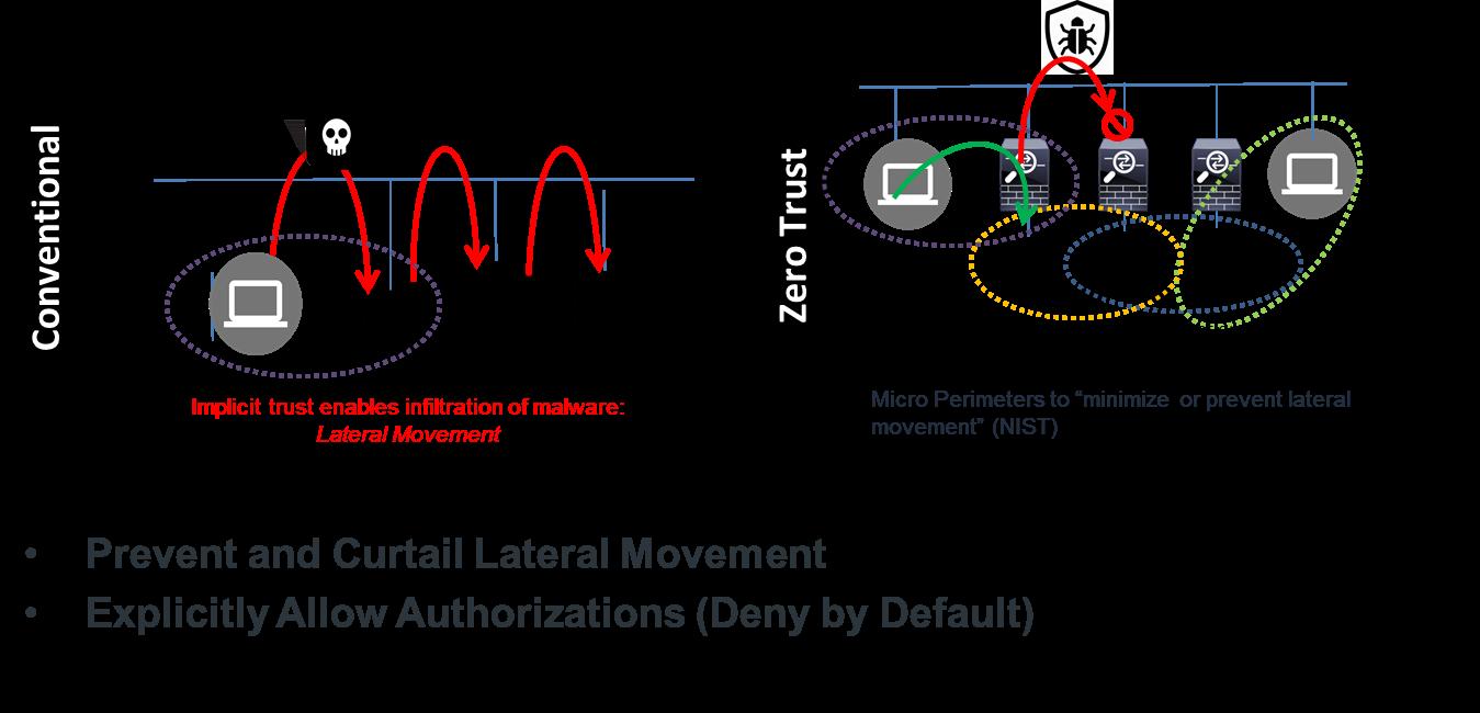 The deployment environment requires the adoption of software defined data center technologies such as software defined networking (SDN) to truly enable ZT controls. SDN technologies integrate at the host level to provide micro segmentation which is a key control to lateral movement. Beyond the traditional implementation of segmentation which focuses on port and protocol, processes should be evaluated along with identity to ensure east-west network flows within application components are not threats.