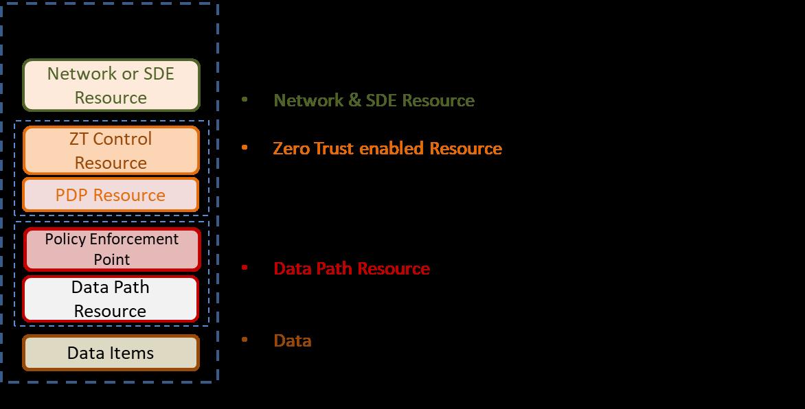 Following DoD standards, the artifacts in this RA are from the Department of Defense Architectural Framework (DoDAF). Because of the broad audience that needs to understand and adapt ZT, an informal style is used for the artifacts. Informal drawings are easier to understand by a wide audience, not all of whom are familiar with Unified Profile for DoDAF/MODAF (UPDM) model representations. These drawings should allow a common representative of the target stakeholder to grasp the meaning of the artifact. With the RA, it is the content that is important. However, this is still a digital architectural model and includes artifacts with descriptions, lists of definitions, and tables of interaction. Entities (the nouns of DoDAF) are defined and used in the artifact drawings which tell a story of function and entity relationships. The All View Integrated Dictionary (AV-2) is organized by type of entity and most of these tables are in the appendix. From this RA, Reference Designs (RD) can be created that capture a ZT logical architecture for specific environments and functional needs.