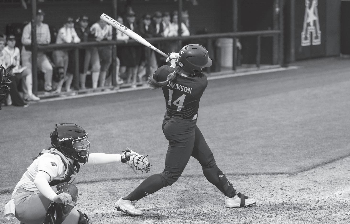 Junior outfielder Emma Jackson steps up to the plate against the University of Maryland, Baltimore County in the final game of the Pirate Clash.