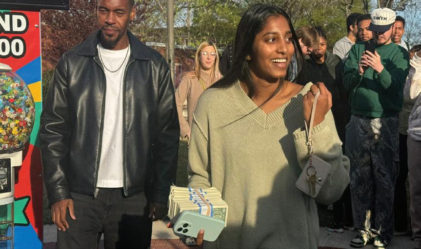 Mr. Beast hosted a surprise event near the Main Campus Student Center, where a lucky student walked away with $1,000.
