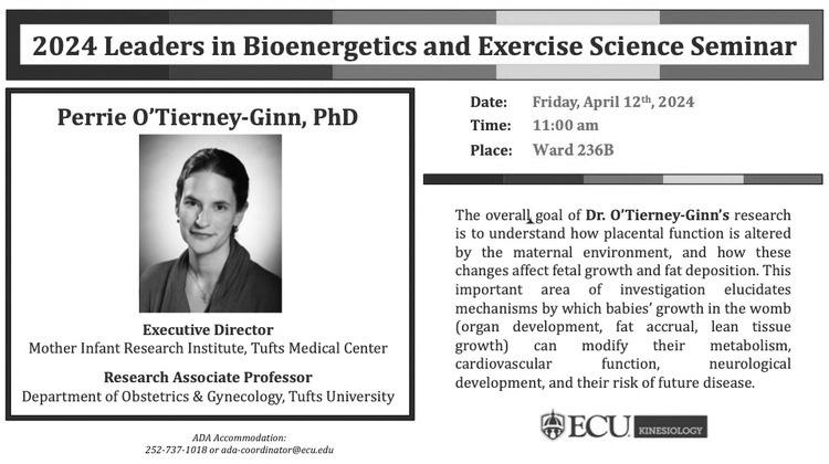 During the seminar, Dr. O’Tierney-Ginn said she would discuss both clinical and lifestyle implications of the research. This would include changes one could make to positively impact fetal development.