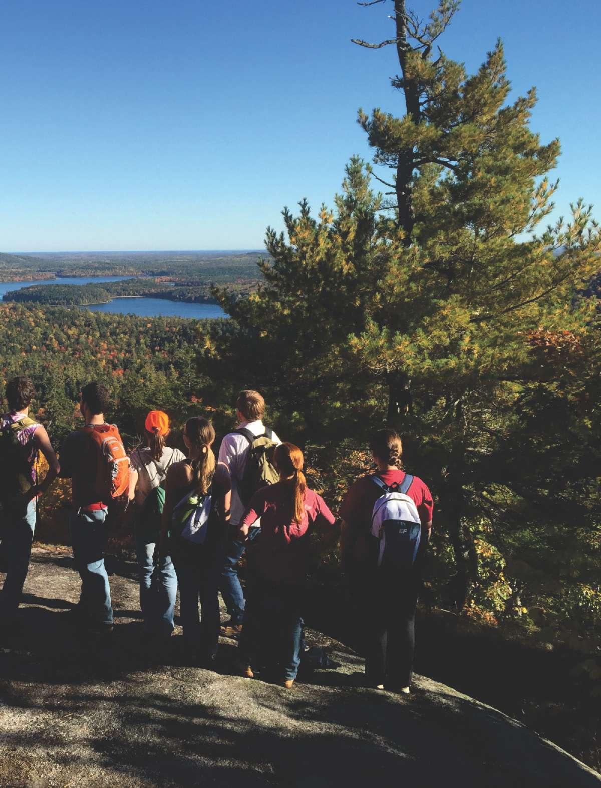 UMM General Ecology students pausing to reflect from the slopes of Tunk Mountain on a field trip