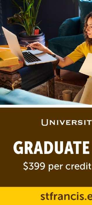St.Francis’graduatedegreesare availableinflexible,hybrid,andonline programswith28different concentrationareas.Graduatebusiness