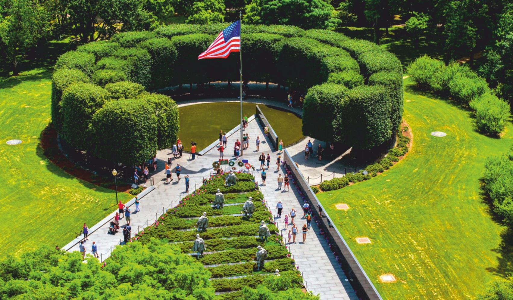 AlsoknownastheKoreanWarVeterans Memorial,thisisoneoftheiconicwar memorialsintheU.S.commemoratingthe sacrificeofthemilitarypeoplewhodiedinthe KoreanWar.Thememorialcomprises19 statuesalongsideawallofremembrance engravedwiththenamesofmartyrs.