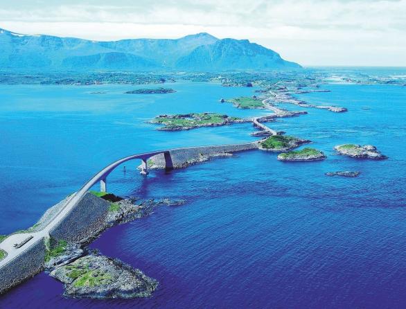 TOP 11 ROAD TRIP IDEAS FOR THE ADVENTURER INSIDE YOU Atlantic Road, Norway Molde to the Gjemnessundbrua Suspension Bridge ExploringNorway'sextensiveroadways,whicharefilledwith bridges,tunnels,andferries,isonewaytoroaminthismighty landscape.Ithasthehighesticypeaks,deepicyfjords,andlakesfull ofglaciers.TheAtlanticRoadisthemostbeautifulroadtogoonthe trip.ThisroadcoverstheCityofMouldeandtheislandofAveroy, givingussomeofthemostspectacularviews.Sothiscouldbeyour destinationamongour11niceroadtripideas.