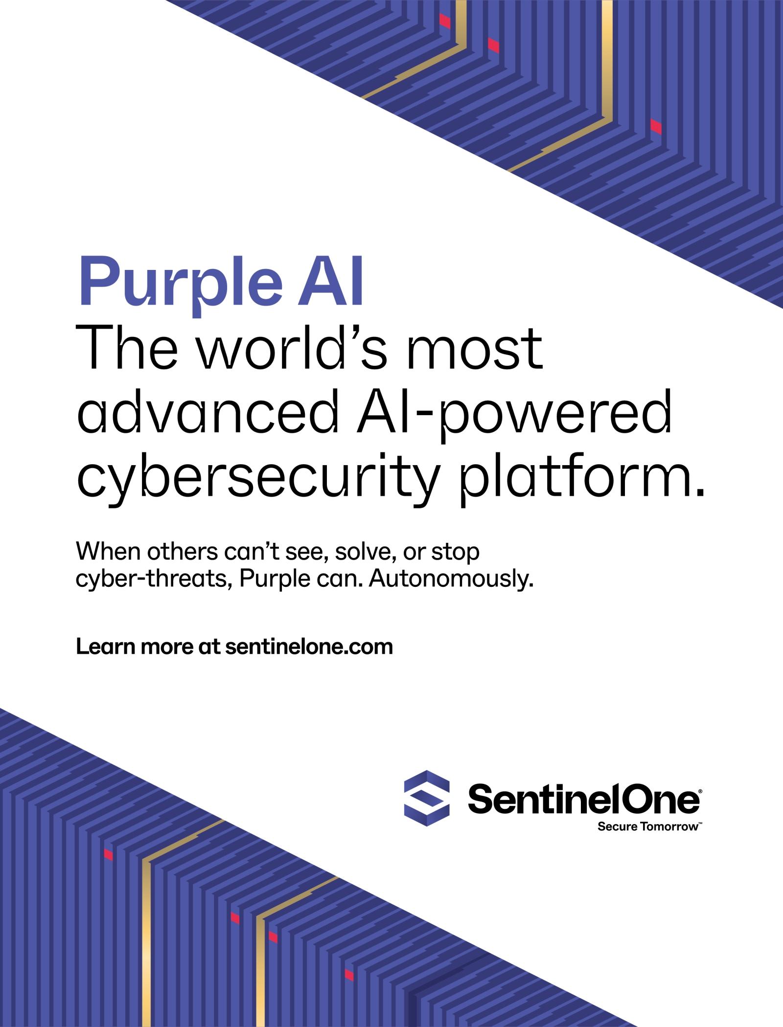 ThecompanyintroducedthefirstgenerativeAI-powered platformforcybersecurity Additionally,SentinelOnewas thefirstprovidertolaunchanAI-poweredthreat-hunting platformandintroducedPurpleAI,recognizedasthe industry’sfirstAIsecurityanalyst.Thecompanyrecently revealeditsvisionforautonomoussecurityandnew