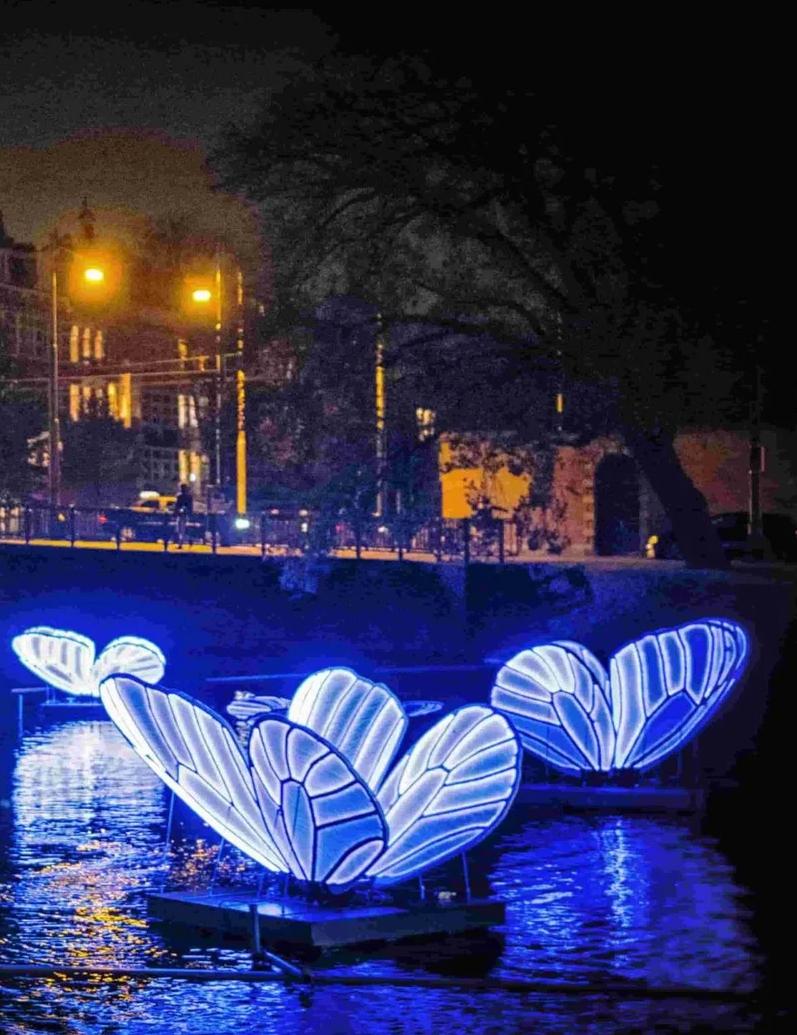 From late November to midjourney, the city is decorated with beautiful light art. Artists from around the world collect here and create amazing lights that brighten the canals, and create a magical sight.