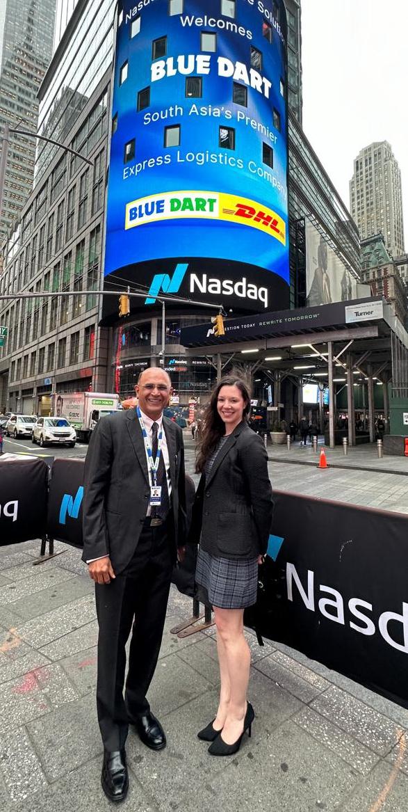 Blue Dart, under Tushar’s legal guidance, continues to solidify its position as India’s most trusted logistics service provider. The company’s vast network and robust infrastructure ensure seamless operations across geographies, providing unmatched reliability in express distribution. Tushar’s proudest career moment came when he was honoured with a prestigious invitation from NASDAQ Governance Solutions, and as a part of his welcome, the Blue Dart - DHL brand proudly adorned the iconic NASDAQ tower in Times Square, New York, symbolizing the momentous milestone in the Company’s journey of delivering excellence.