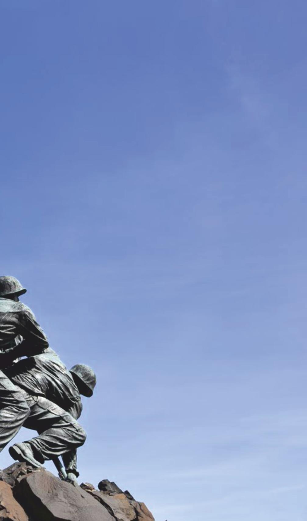 MarineCorpsWarMemorialisa nationalmemorialthatis dedicatedtoalltheUnitedStates MarineCorps(USMC)wholost theirliveswhileservingthe country.Thememorialhonorsall themartyrssince1775.Itis inspiredbyaniconicphotograph in1945.Thephotograph comprisedsixUSMCraisinga U.S.flagontopofMount SuribachiduringWorldWarII.