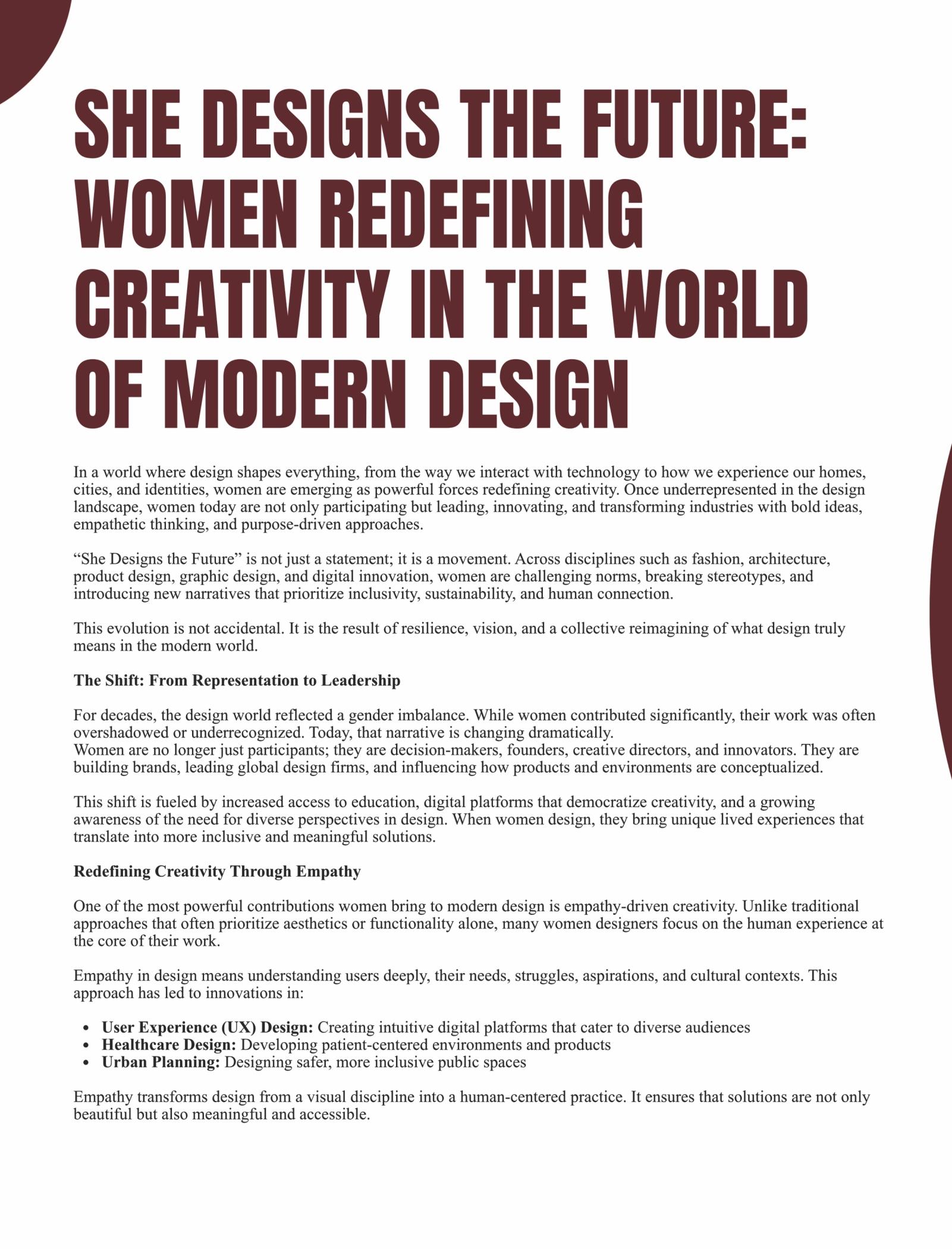 SHE DESIGNS THE FUTURE: WOMEN REDEFINING CREATIVITY IN THE WORLD OF MODERN DESIGN