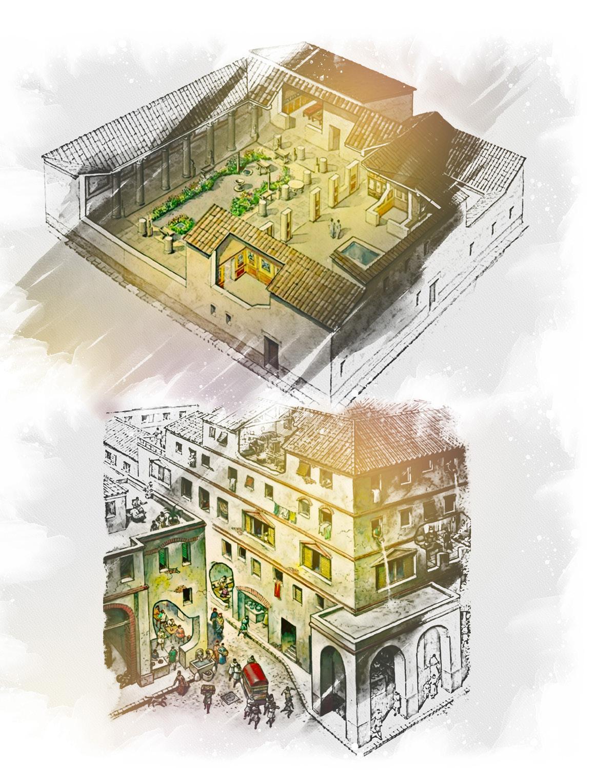 > Rubbish and the toilet pot contents were thrown onto the street below. Plebeians would eat at a local popina, thermopolia, or taverna.