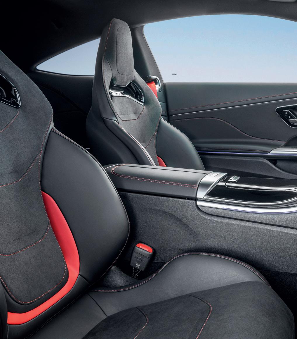 The interior of the CLE 53 4MATIC+ offers an exclusive experience with the latest MBUX infotainment system, including a 12.3inch fully digital driver display and an 11.9-inch central display in portrait format. Dynamic ambient lighting with 64 colours adds to the sophisticated atmosphere. The integral seats in ARTICO manmade leather and MICROCUT microfibre provide both sportiness and strong lateral support, with additional options in leather and Nappa leather.