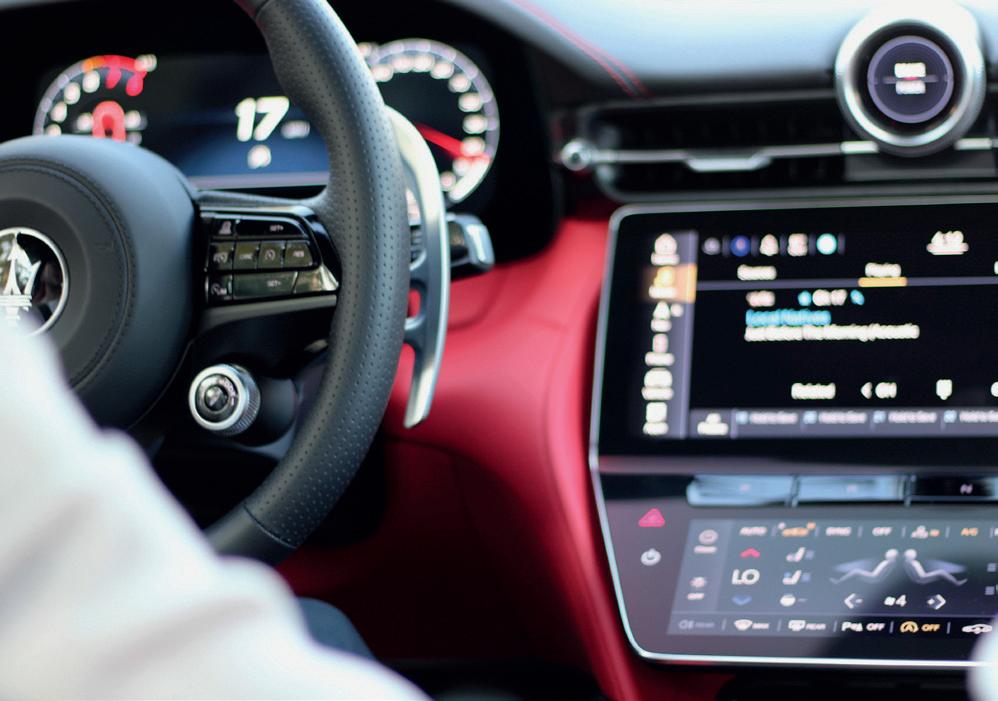 Maserati has significantly upgraded the onboard technology. The infotainment system, a Googlebased setup, features a 12.3-inch central touchscreen and an 8.8-inch display for climate controls. The graphics are crisp, and the system includes navigation, smartphone integration, and wireless charging. The optional Sonus Faber sound system, with up to 19 speakers, delivers an exceptional audio experience. If the soundtrack of the tuned exhaust note isn’t enough, the upgraded sound system really packs a punch, with crisp high’s and sharp deep lows.