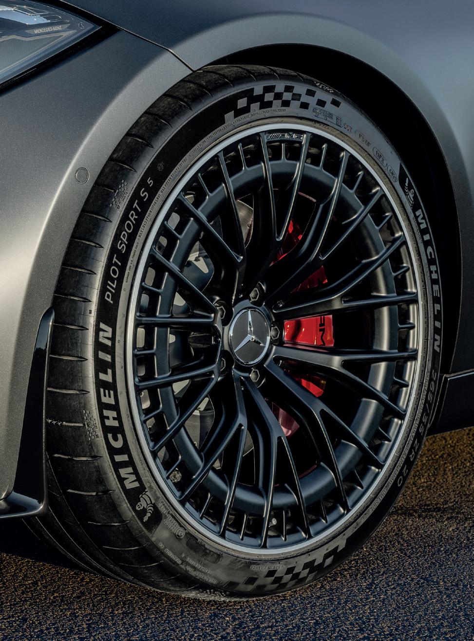The electronically limited top speed of 250 km/h can be increased to 270 km/h with the optional AMG Driver’s Package. The AMG high-performance brake system ensures optimal stopping power, with perforated and ventilated discs on both axles.