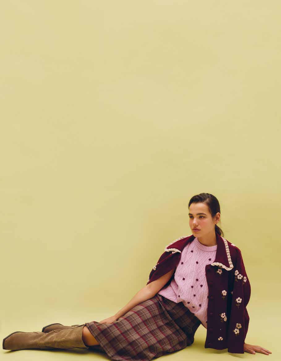 En Margo Baridon, el otoño se construye desde el detalle: tejidos con relieve, bordados visibles y terminaciones que suman sin recargar. Las siluetas se mantienen clásicas con tapados, camisas y chalecos, pero con un giro más cuidado, donde lo artesanal aparece de forma sutil. La paleta combina tonos suaves con marrones y acentos más profundos, en una propuesta cálida, equilibrada y muy enfocada en cómo se arma cada prenda.