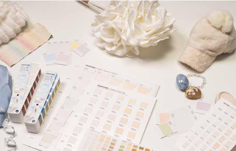 Powdered Pastels se construye a partir de tonos pasteles y neutros como Lemon Icing, Nimbus Cloud y Orchid Tint, que generan composiciones delicadas con sutiles cambios de tono.