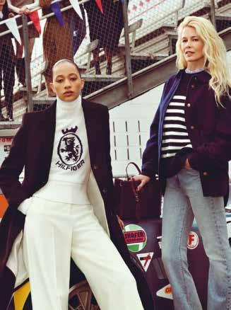 Tommy Hilfiger plantea un otoño donde el preppy se vuelve más dinámico: sastrería relajada, denim recto y capas que combinan lo clásico con guiños deportivos. Aparecen cuadros, rayas y tejidos tradicionales, pero en siluetas más sueltas y actuales, mientras la paleta se mantiene en neutros, azul marino, camel y rojo. Hay una referencia clara al universo racing que le suma energía a un estilo que sigue siendo clásico, pero menos rígido y más actual.