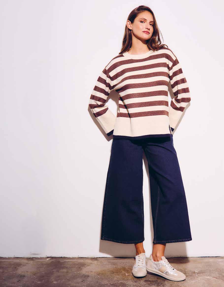 La marca encara el otoño con una evolución clara: el foco pasa a siluetas más amplias, con el denim como protagonista en versiones wide y tiro alto, combinado con camisas y tejidos que suman textura sin perder liviandad. La paleta se vuelve más cálida y los detalles constructivos ganan protagonismo, con terminaciones visibles y guiños artesanales. El resultado es un estilo relajado pero pensado, donde las capas empiezan a aparecer sin volver el look pesado.
