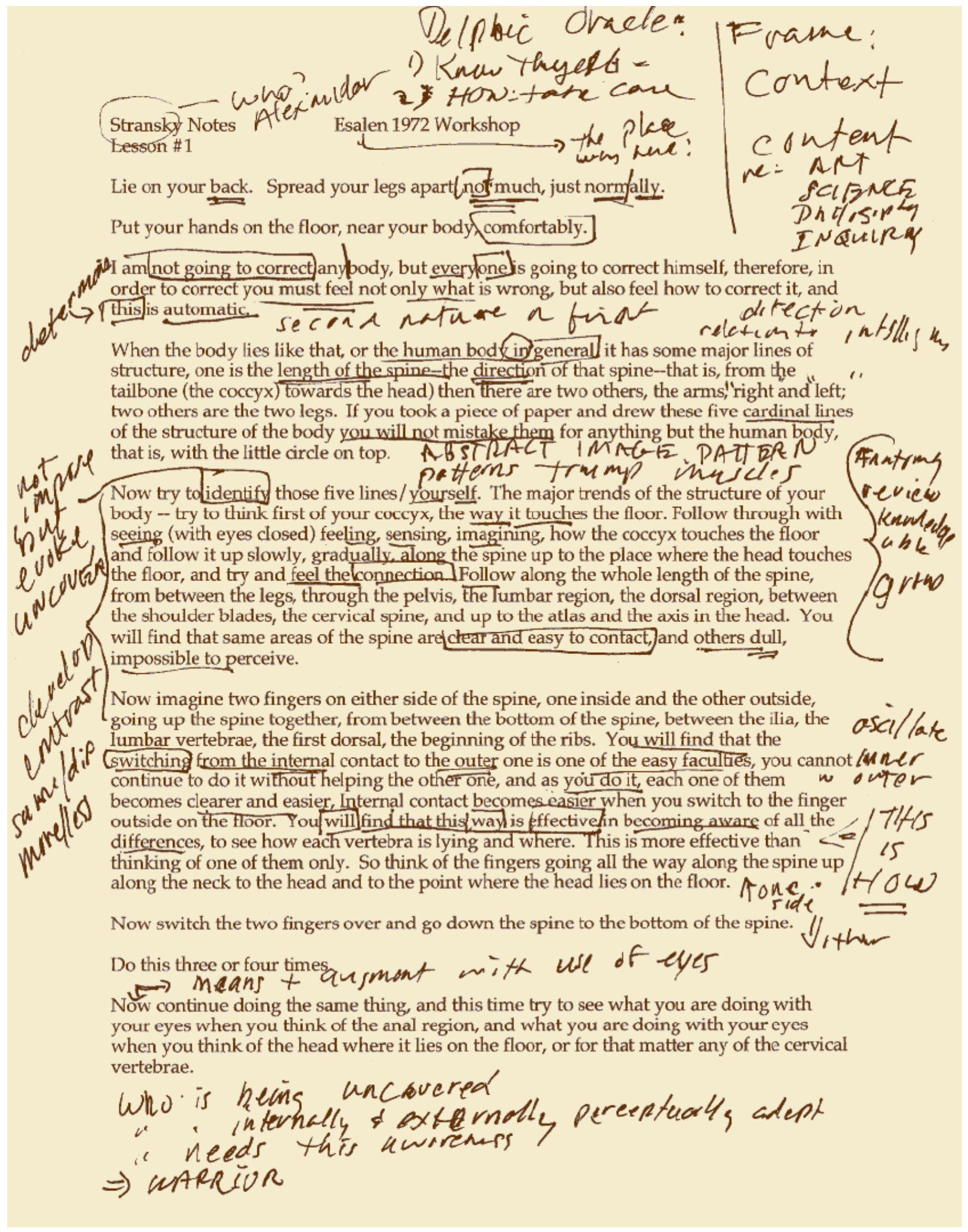 Feldenkrais' words also recall those in Dr. Eliou's ATM training notebook: