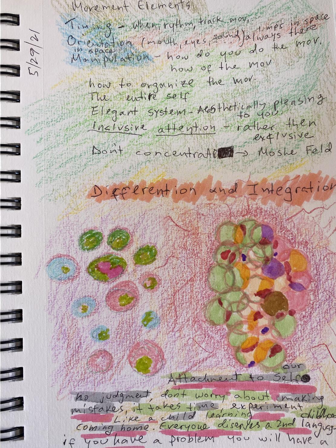 Feldenkrais training notebook pages by Dr. Zoi Dorit Eliou