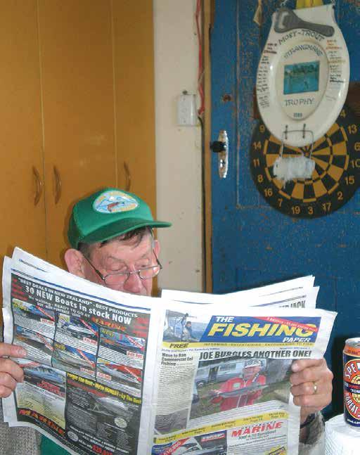 Behind him, one of his trophies nestles against the ubiquitous dartboard. Having found what he was looking for, he always moved on to the pages giving useful guidance on high country fishing and ads for yet another gizmo for the bach. It sat near the shores of both Lake Clearwater and Lake Camp, featuring a coal range that was perfect for doing whitebait patties, gigantic roasts, a full English breakfast to set one up for the day of fishing ahead, and baking a rabbit to a crisp, crumbling, blackened finish, after enjoying a few