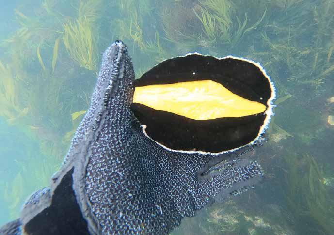 worth noting (although not recommended) that this can be taken in conjunction with the corresponding bag limit of blackfoot pāua. There is a minimal commercial harvest of yellowfoot pāua of only a tonne or two per year, which is part of the total commercial allowance for blackfoot pāua. Commercial harvest is low due to the relative sparsity of yellowfoot pāua, making them uneconomic to harvest in large quantities. There is a small domestic market for yellowfoot pāua, but there is currently no international market. This is because of the high similarity of yellowfoot pāua with the abalone species produced in vast quantities in aquaculture farms in China (Haliotis discus hannai), making it di cult to compete in this market.