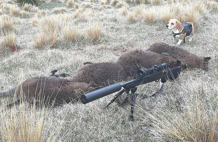 potential fur-cum-dog tucker but as I stand to grab the .22 from its insecure moorings afore me, I lean over the front springs and they groan aloud. This groan, or the click of my safety switch, is enough to send the nervy little critters bolting.