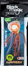 High quality sliding head jig with ‘cracked’ lumo e ect, highly re ective eyes and lumo skirts for maximum visibility in deep water