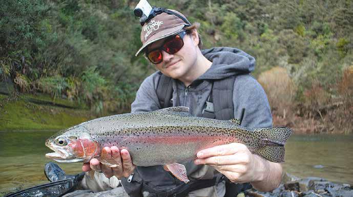 I continued, meandering through the valley towards a favourite pool of mine when I spotted a very large, slow-moving stretch, with at the head. In no time I’d plucked out a spirited threepound rainbow hen.