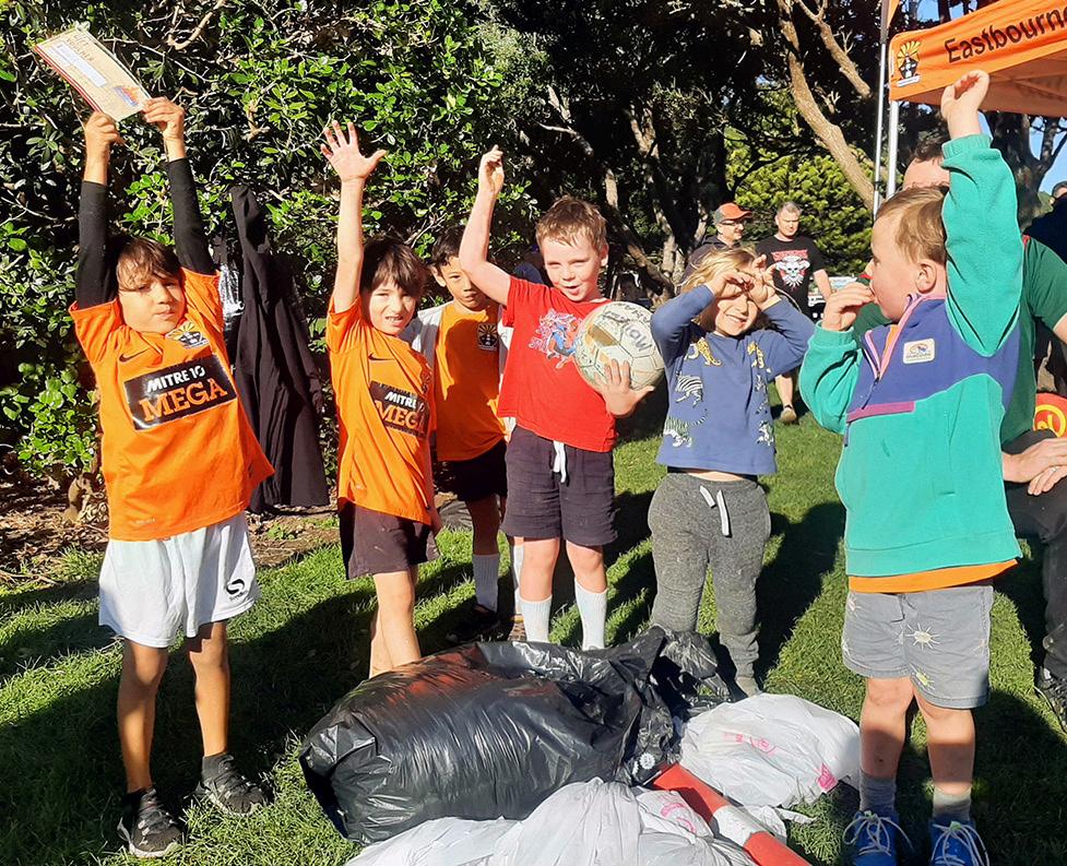 Eastbourne's junior footballers got stuck in for a good cause, cleaning up Days Bay Beach.