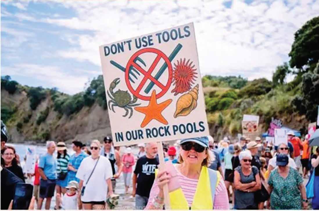Fisheries o cials and some researchers instead highlight population growth and changing food preferences across a more diverse Auckland as drivers of pressure, stressing that many people from various backgrounds are gathering within legal limits. But in their current mood the local residents will not be satisfied until action is taken. In similar situations here and overseas the operational measures include: seasonal closures timed to spawning or recruitment, gear restrictions (e.g. bans on crowbars or chisels on rocky shores), and strict daily bag and size limits for intertidal