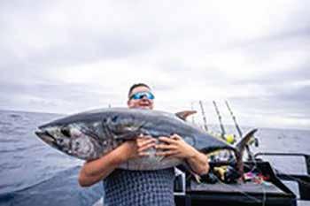 Ben Carson with the first Game fish of the trip, a Pacific Bluefin Tuna estimated to be 40-50kg. Caught o the coast of Westport.