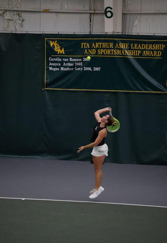The Tribe stood its ground, as Davis found herself back in the match on court No. 3. Davis put on a strong effort to get a secondset 6-4 victory, forcing the third set and taking back Nakano’s early control. On court No. 6, Gonzalez-Galino found a rhythm, forcing a third set with a commanding 6-1 second-set win.