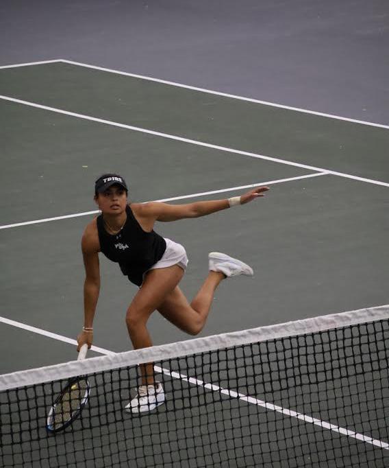 After the break, the Tribe got back to work with new momentum. On court No. 4, Kernagis jumped out to a twogame lead, and on court No. 5, freshman Rebeka Svabikova led comfortably early on in the first set. However, this did not last on courts No. 1, No. 6 and No. 3, where Xi took the first set 6-0, Chacon won 6-4 and Nakano bested Davis 6-1.