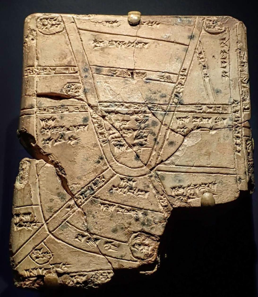 The map is carved into a monumental stone (stele). North is at the top. The grid was here used as a measure of the distance between administrative nodes. Rivers and mountains are named, prefectures from the past to the late 11th century are also marked. The stele is in the Shaanxi Provincial Museum, Xi’an, China.