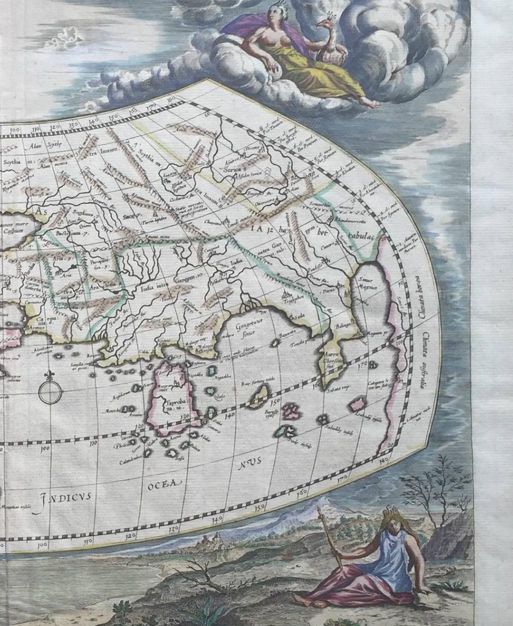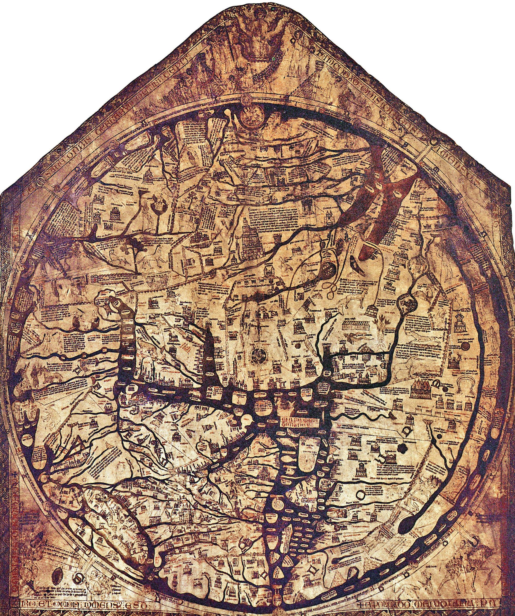 The cartographic problem of mapping the curved surface of the earth on a sheet of paper was much discussed, as one can tell from Strabo's elaborations in his Geography. “To represent the world correctly,” he writes, “one needs a globe of at least ten podes (Greek feet) in diameter. Otherwise, on a plane surface of at least seven podes, one could draw straight lines to represent the circles of the parallels and meridians. It does not matter that meridians converge to the pole while shown as straight lines perpendicular to the parallels, for our imagination can easily transfer to the globular and spherical surface the figure or magnitude seen by the eye on a plane surface.” But he warns that it takes a certain level of education to understand such maps: “The mere drawing on one and the same plane surface of Iberia and India and the countries between them gives to the man who has previously learned of the arrangement and movement of the celestial bodies and grasped the fact that the true surface of the earth is spherical but that it is depicted for the moment as a plane surface for the convenience of the eye, gives to him